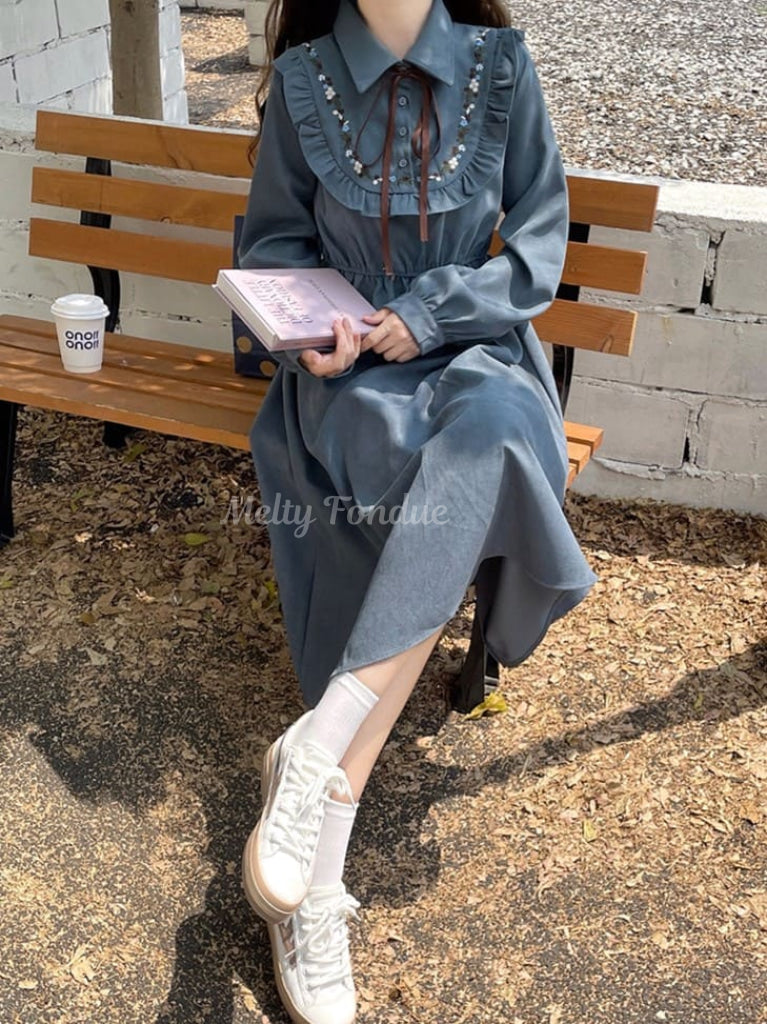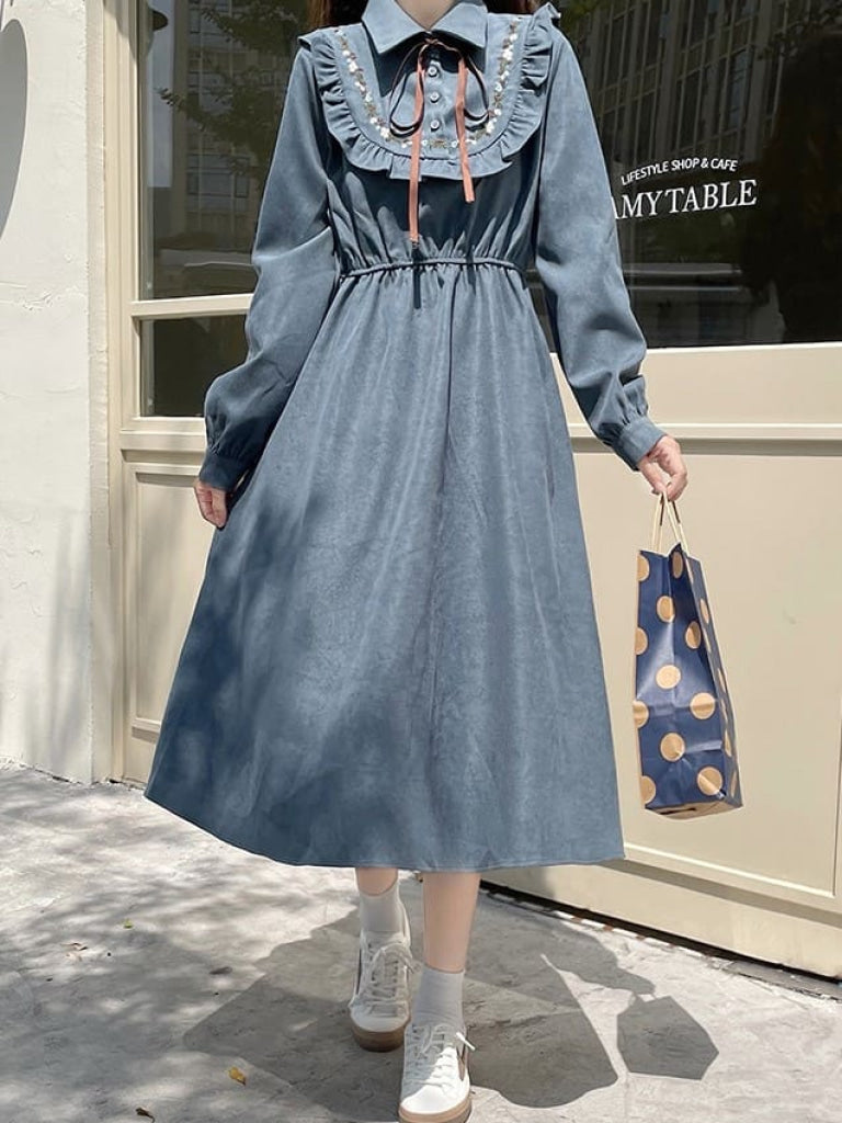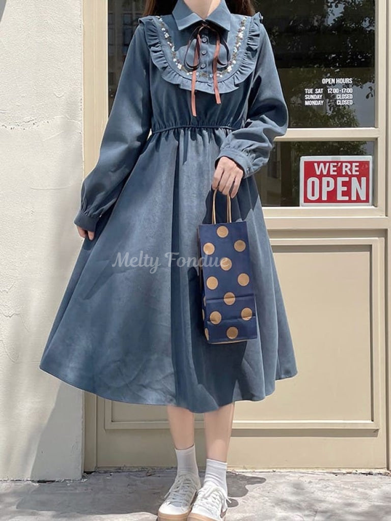 ・柔らかい色合いとデザインで、童話のような魅力を持つワンピース。