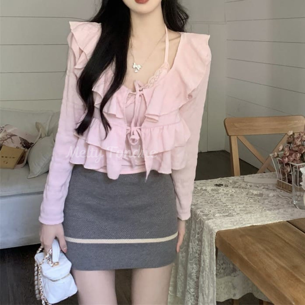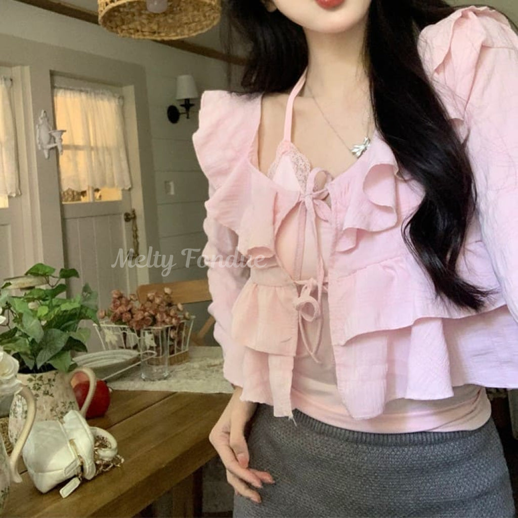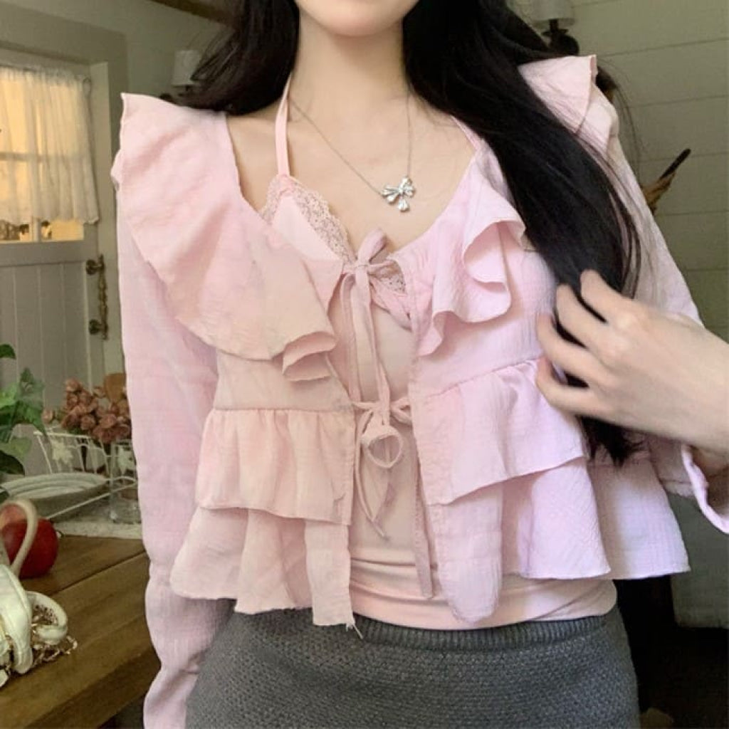 【キャミソールとカーディガンの2点セット】かわいいの魔法纏うガーリートップス