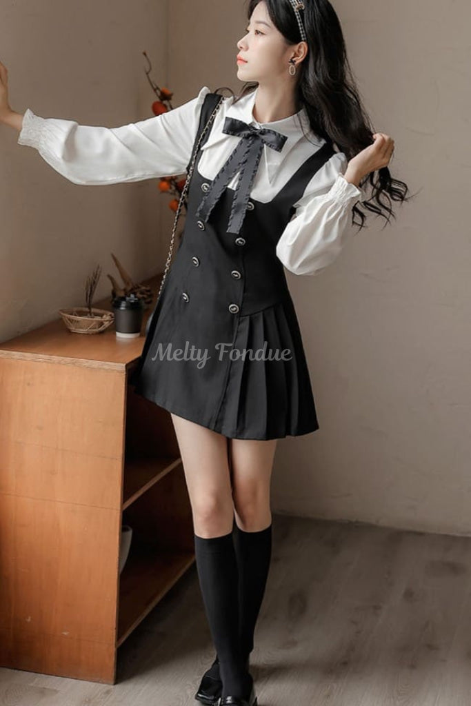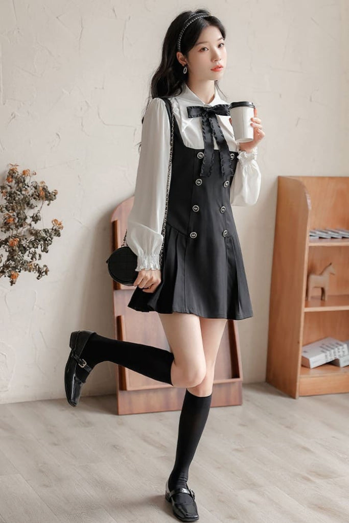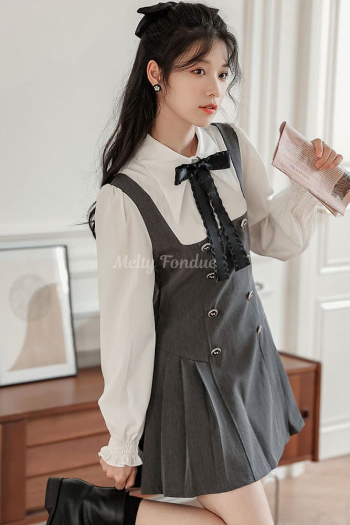 ・スカート部分には控えめなプリーツが施され、動くたびにふわりと揺れる。