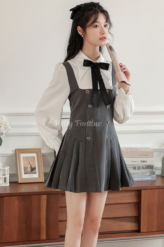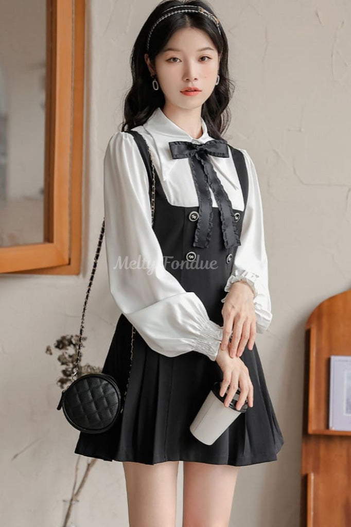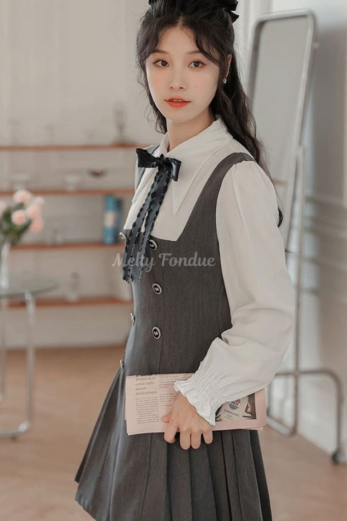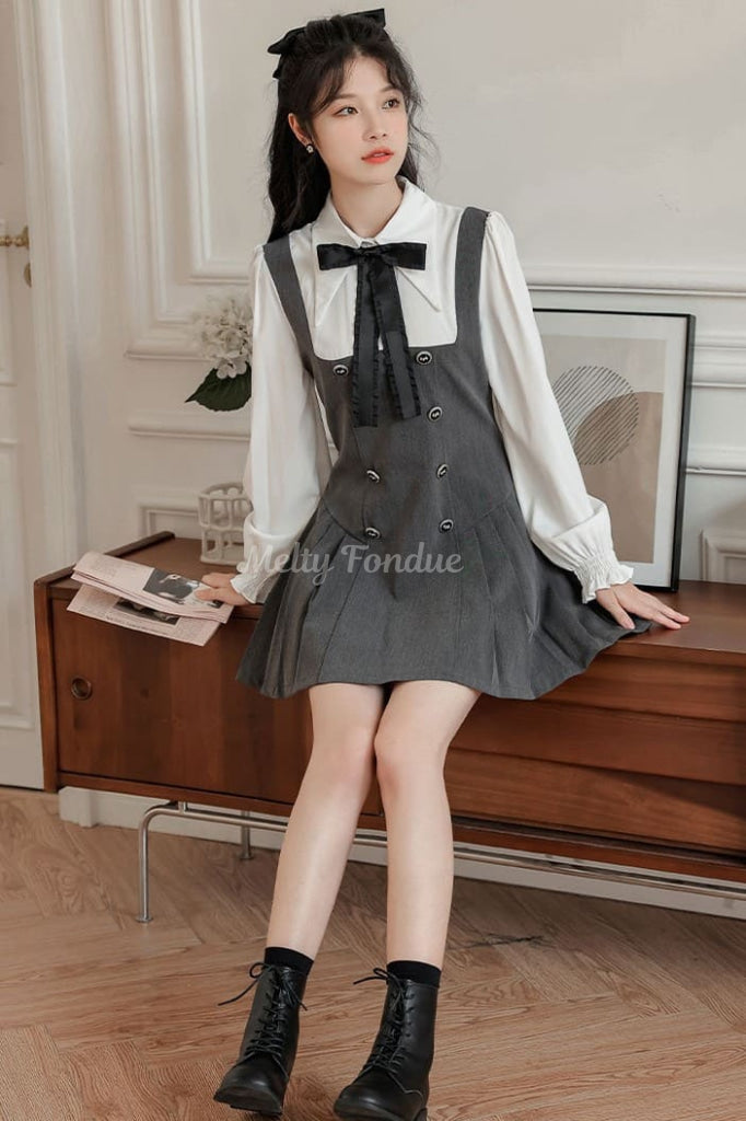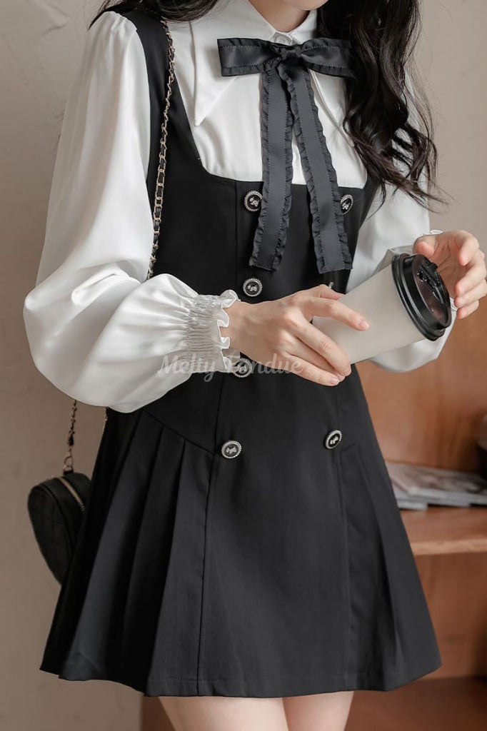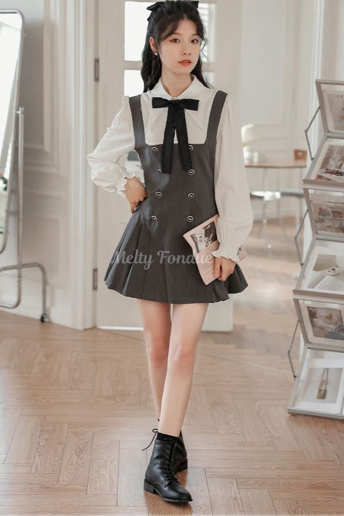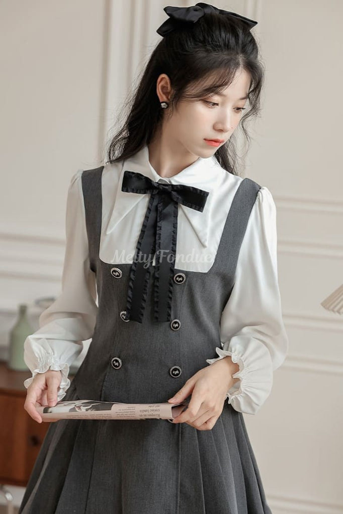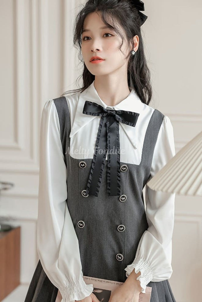 大きなリボンタイとクラシカルなデザインがポイントで、デイリーコーデにも特別な日の装いにも使えます。