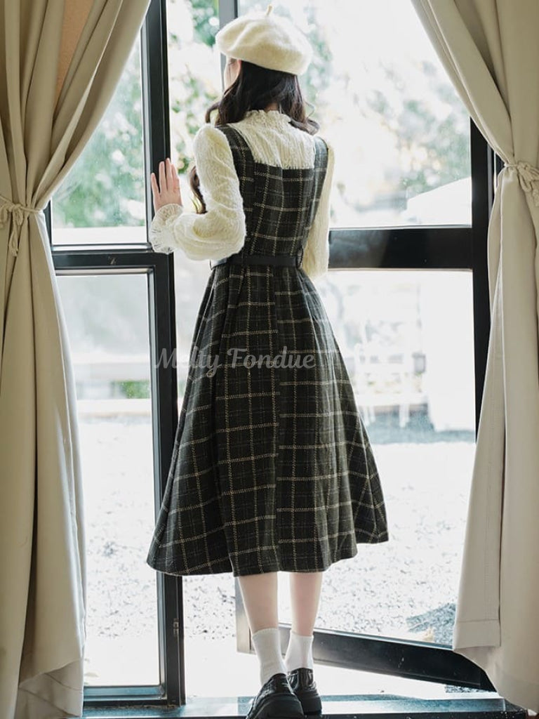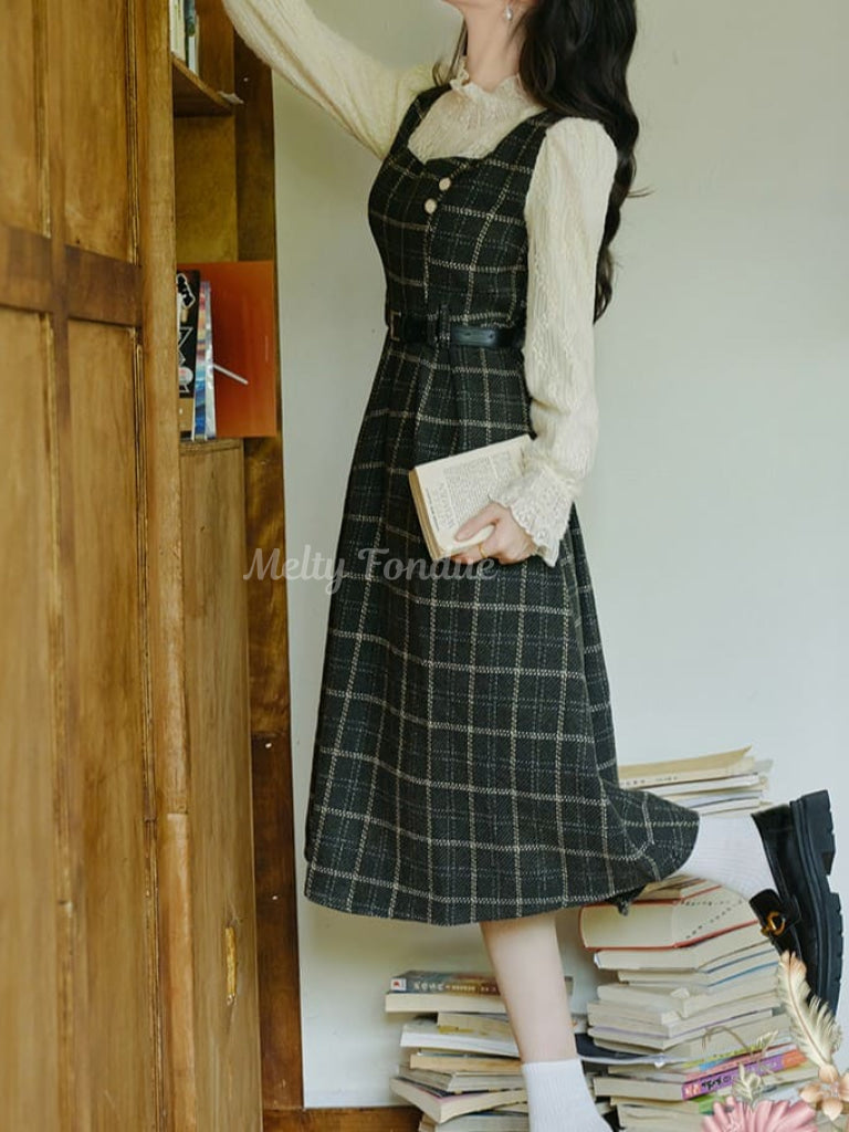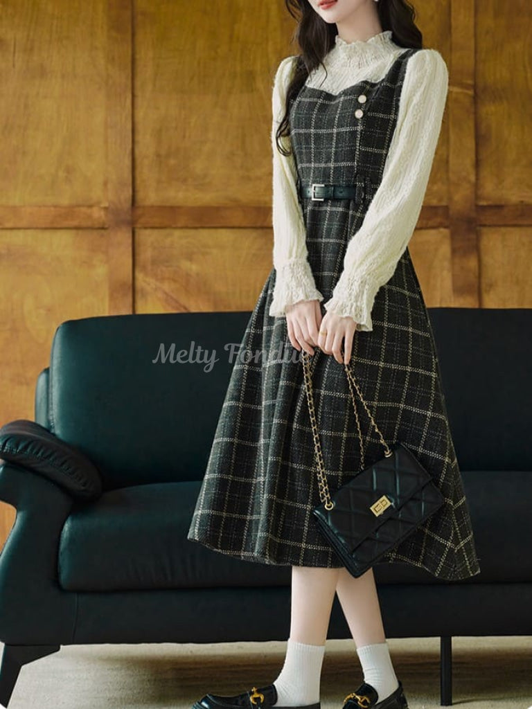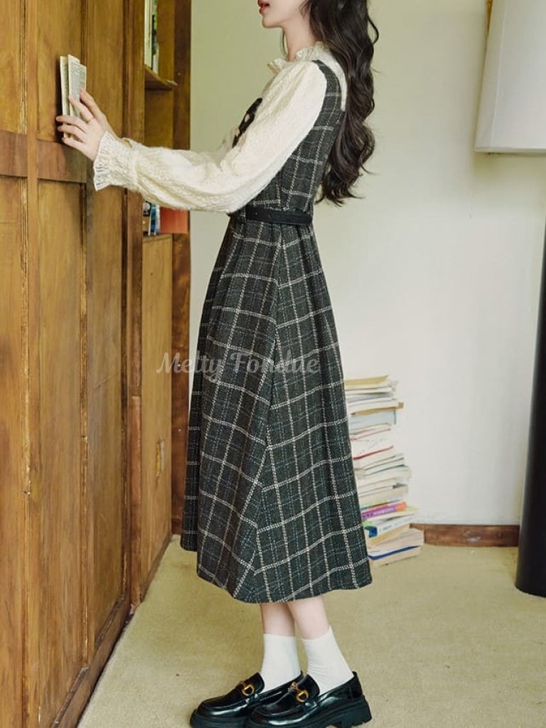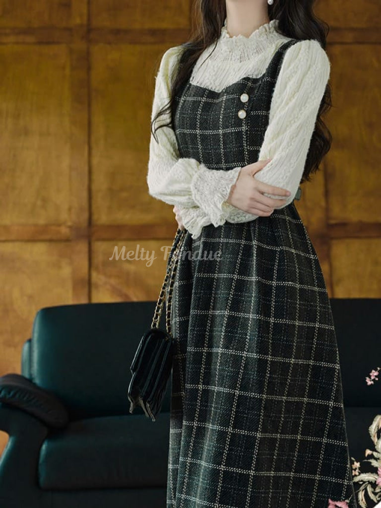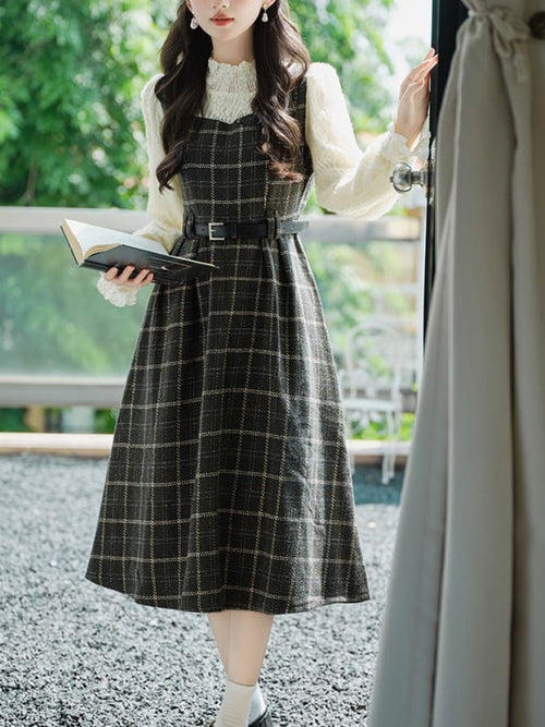 クラシカルなチェック柄と上品なシルエットが魅力のワンピース