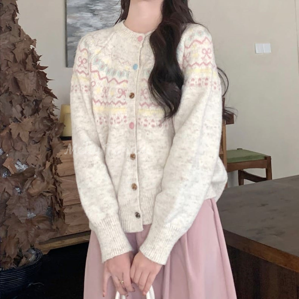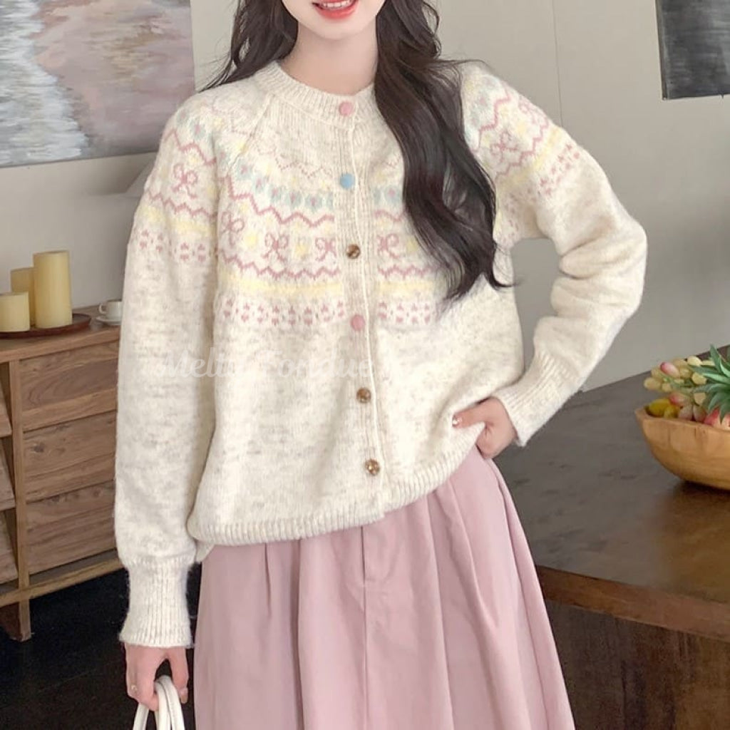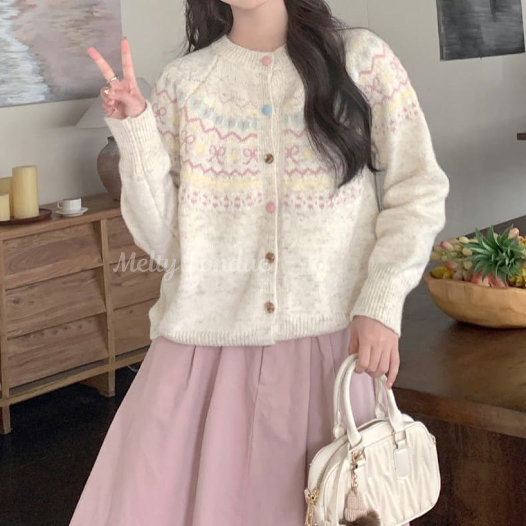 パステルカラーのノルディック柄が愛らしいカーディガン