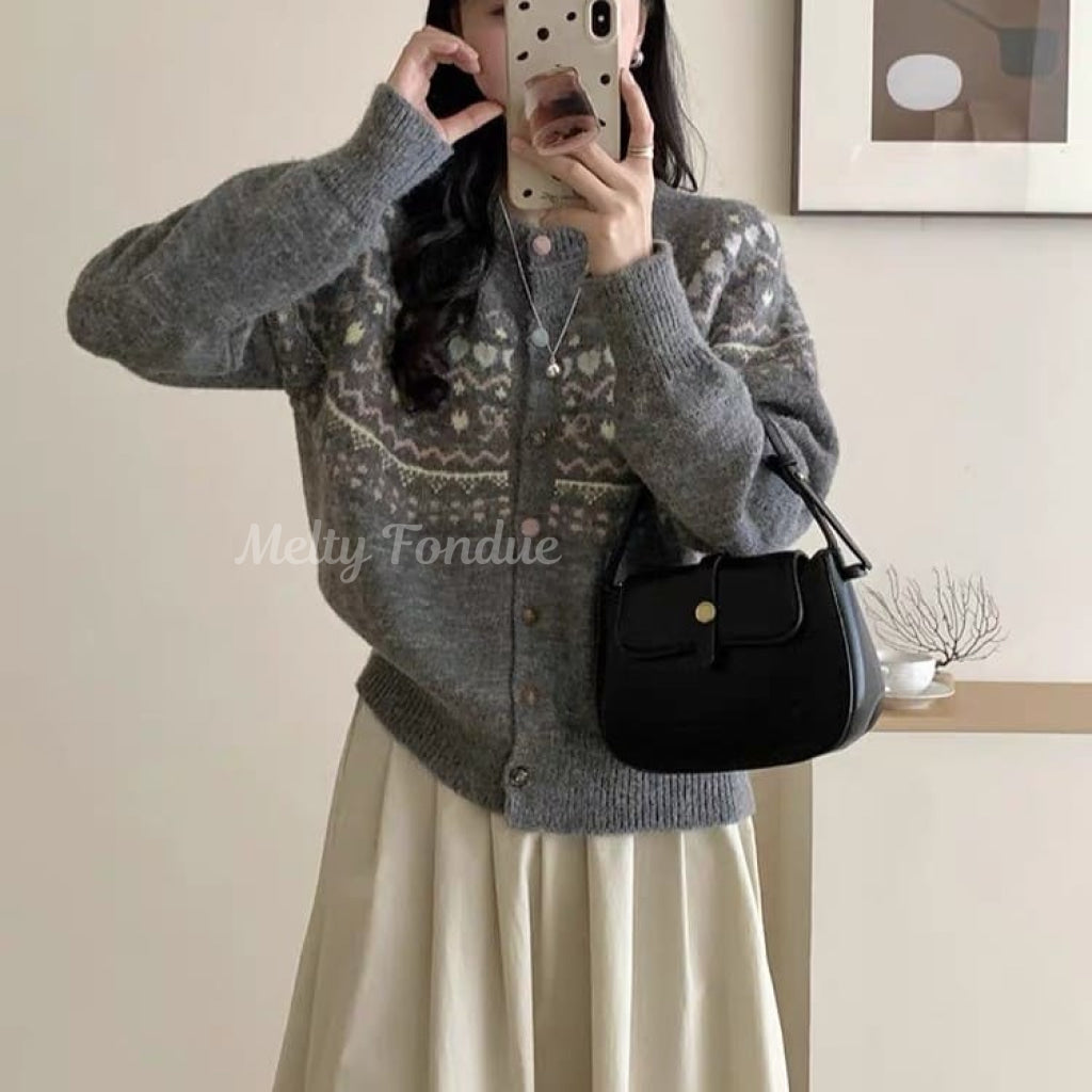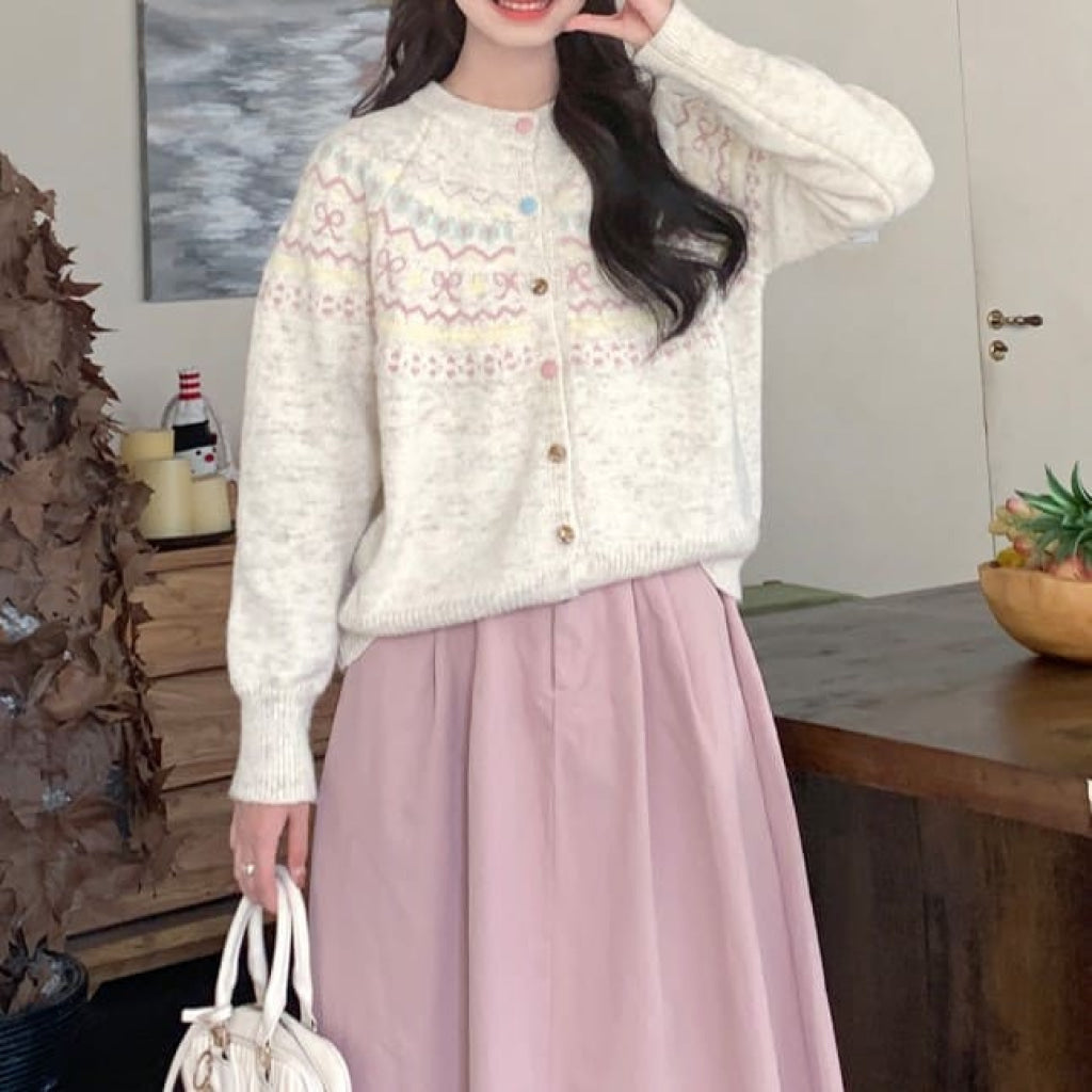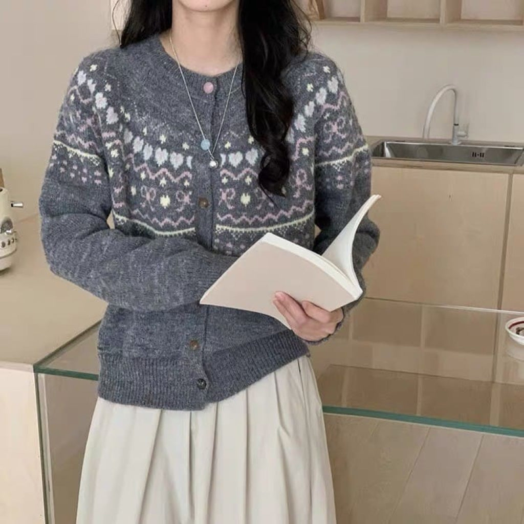 パステルカラーのノルディック柄が愛らしいカーディガン