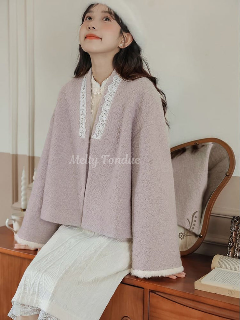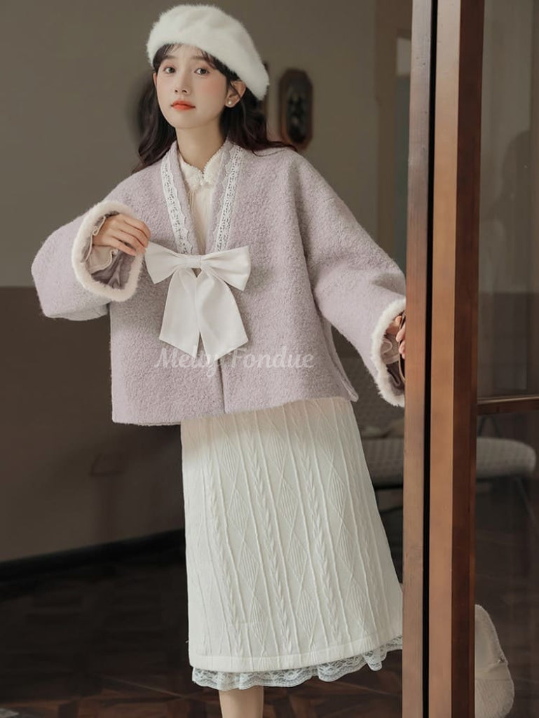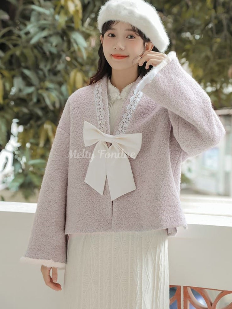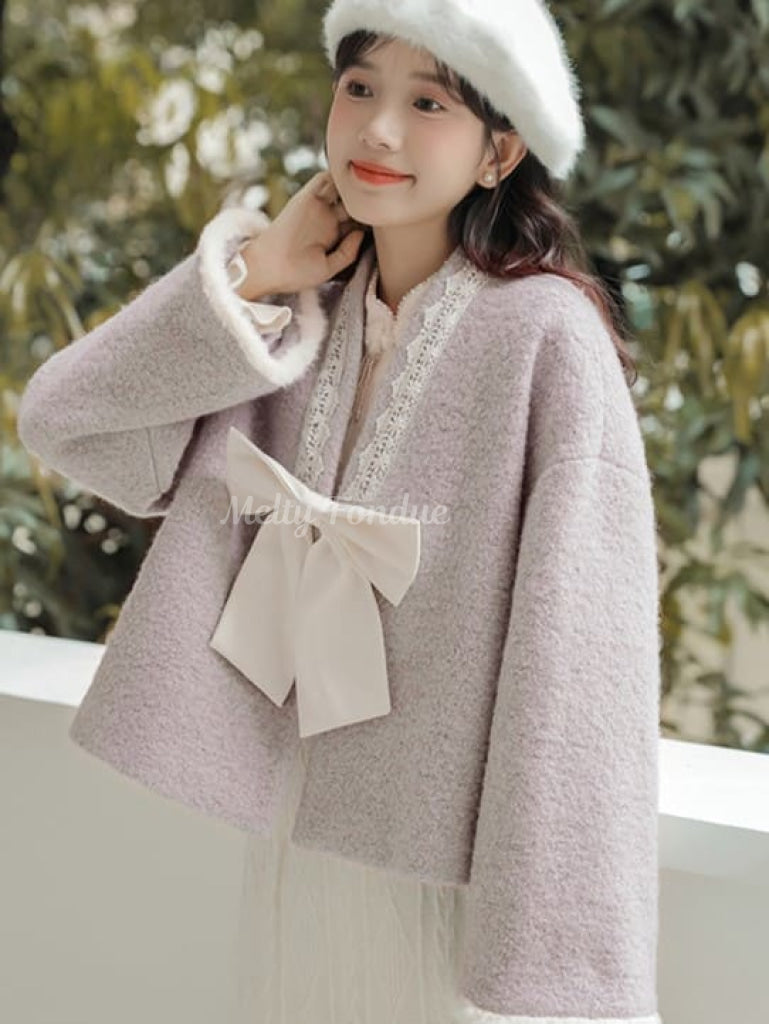 ふんわりとした質感と大きなリボンで、プリンセス気分を高めるキュートなアウター。