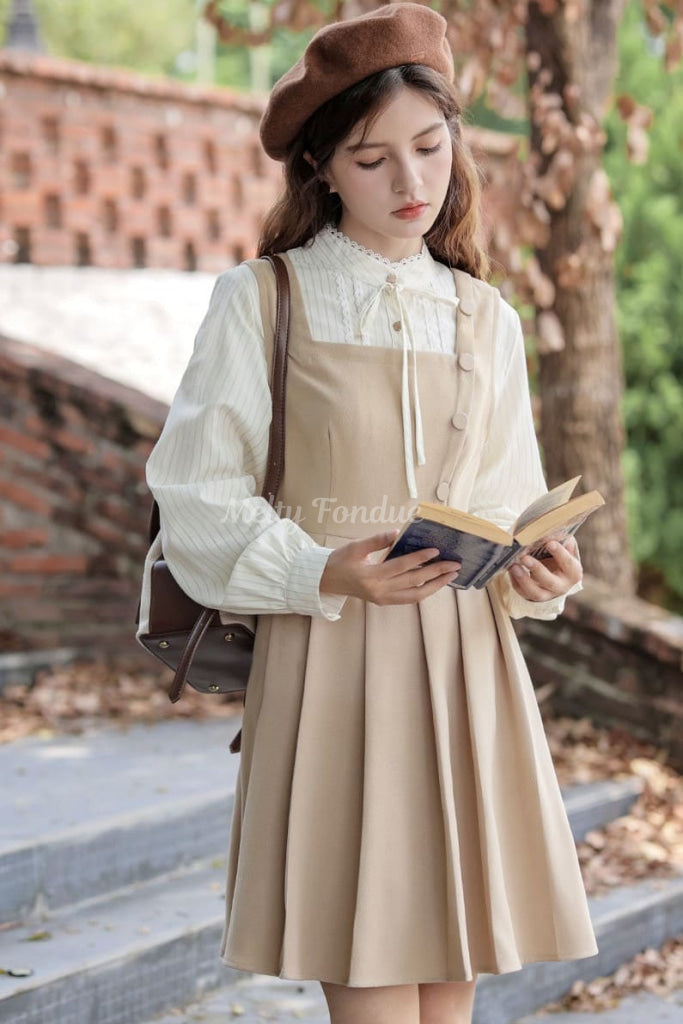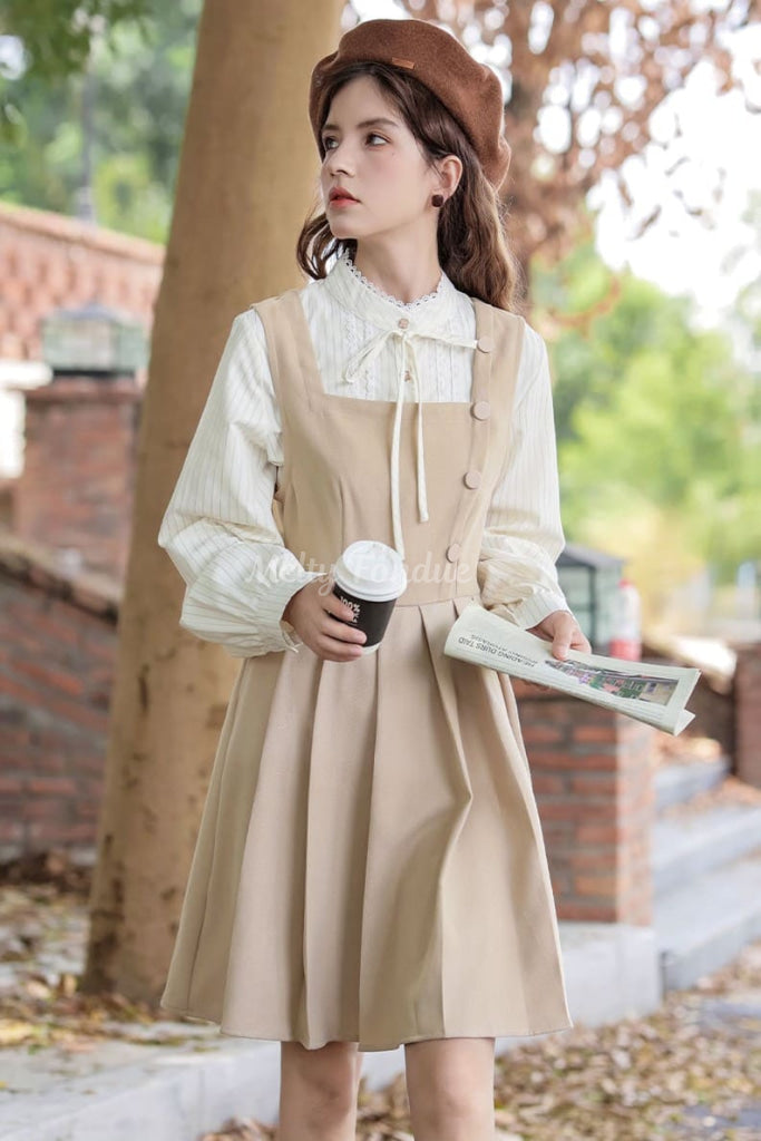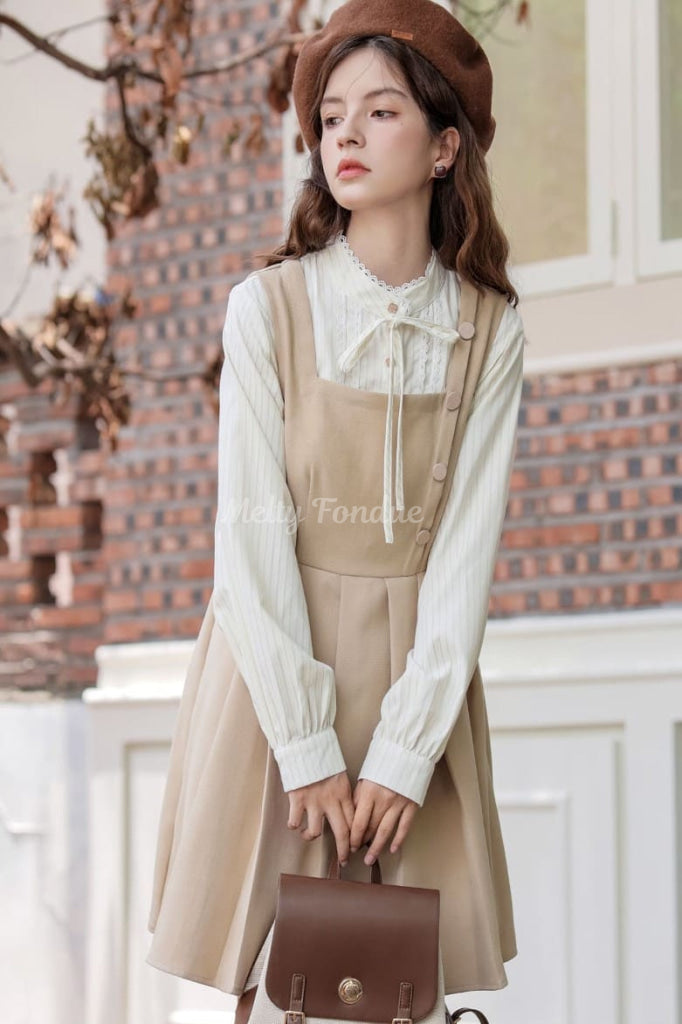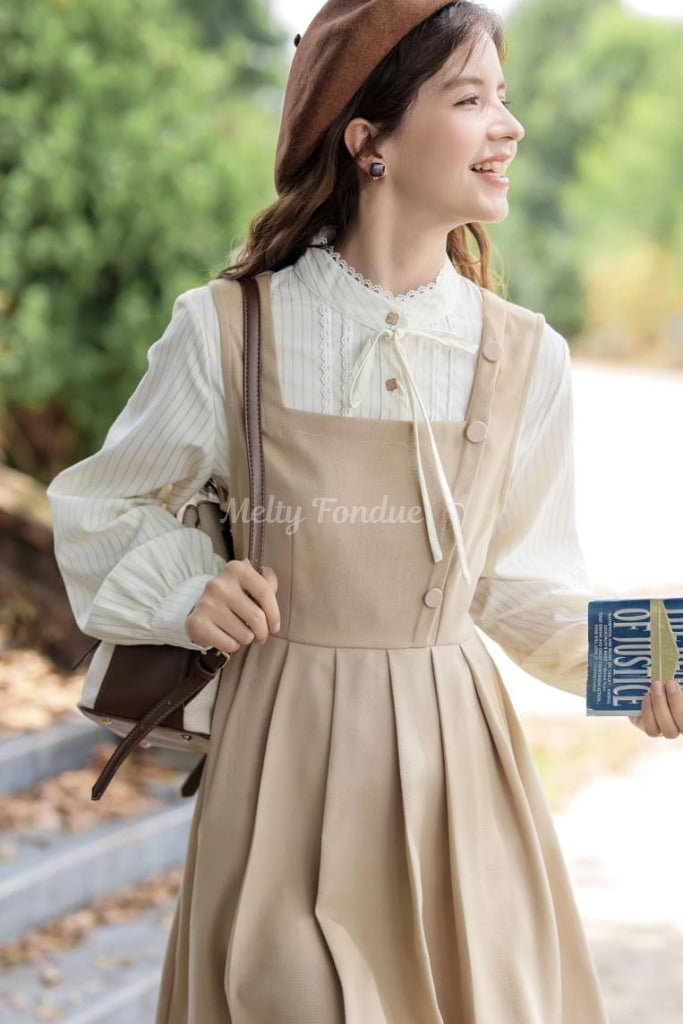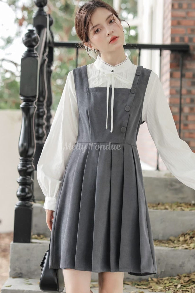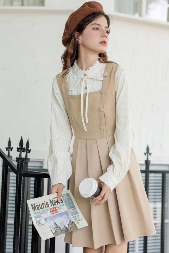 ・スクエアネックとフロントボタンがクラシックな魅力を引き立てます。