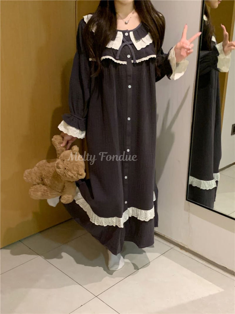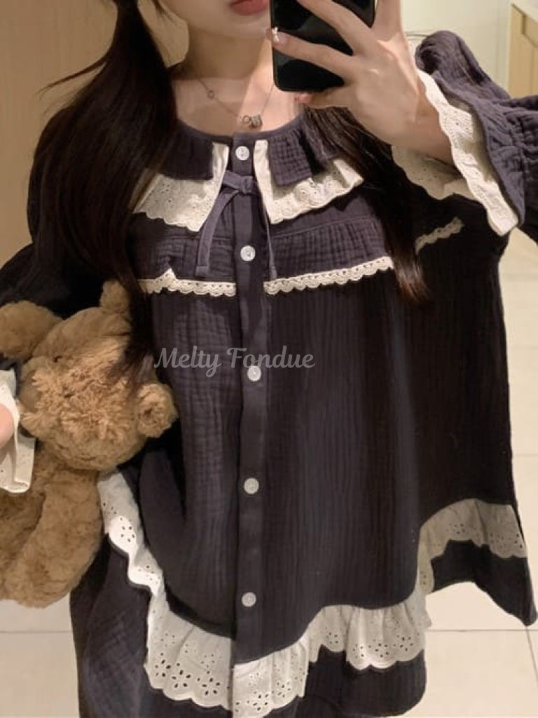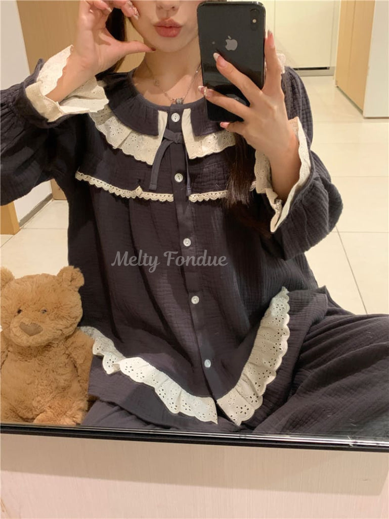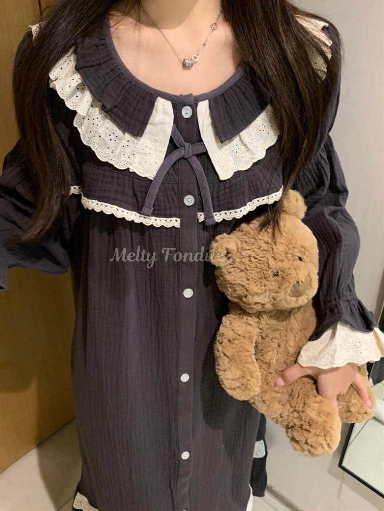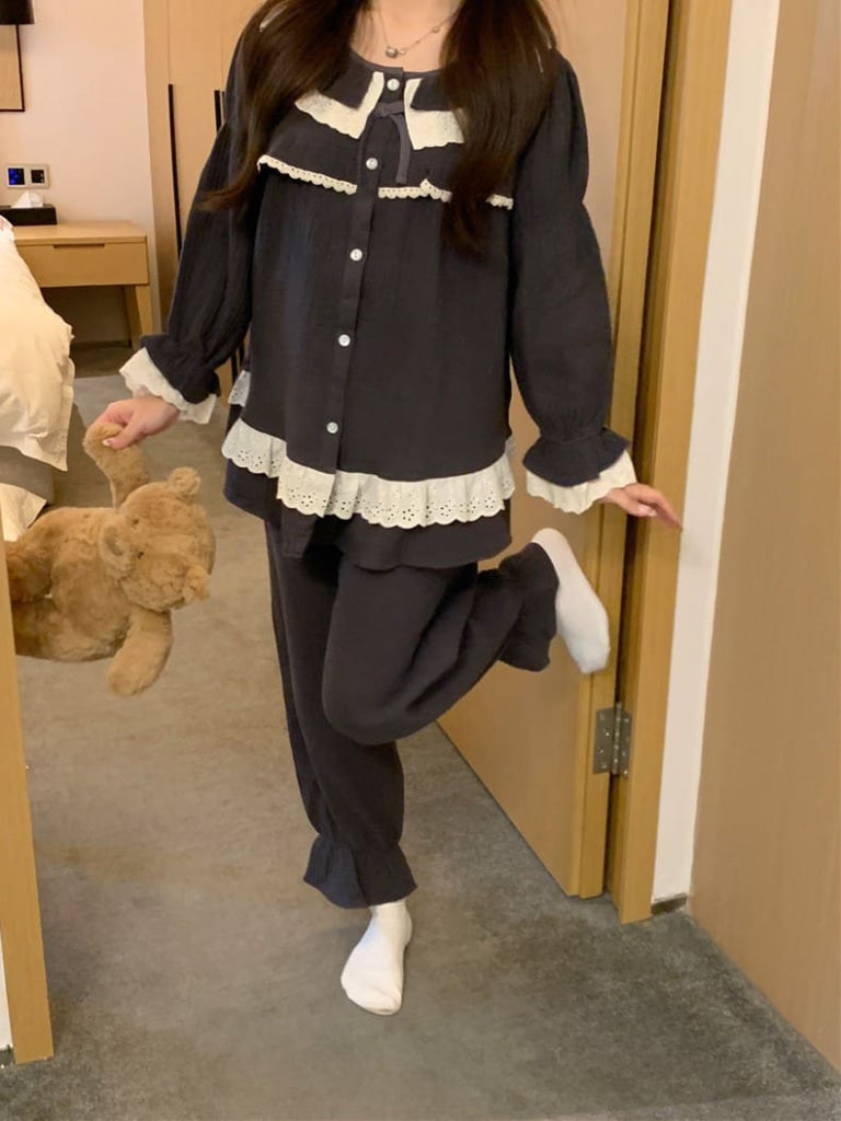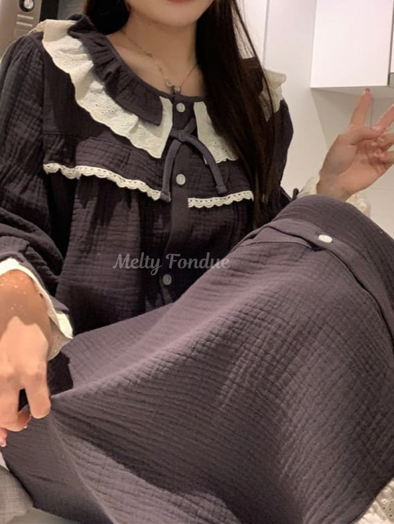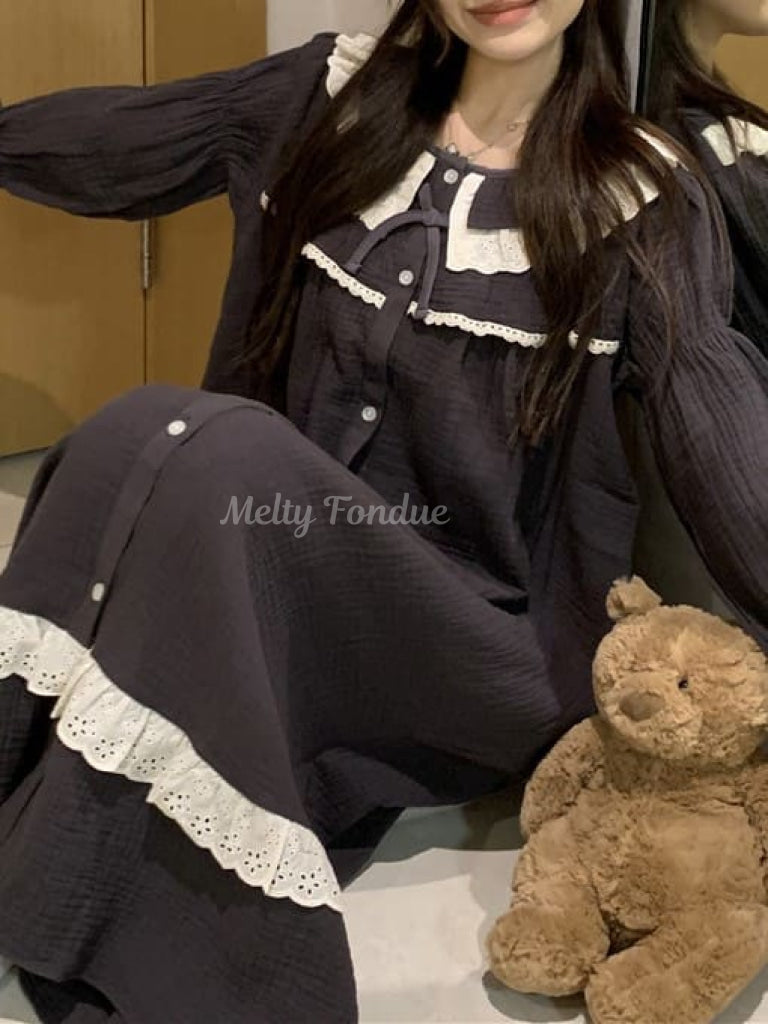 レースのディテールがとても可愛らしく、お家でのリラックスタイムを特別なものにしてくれます。