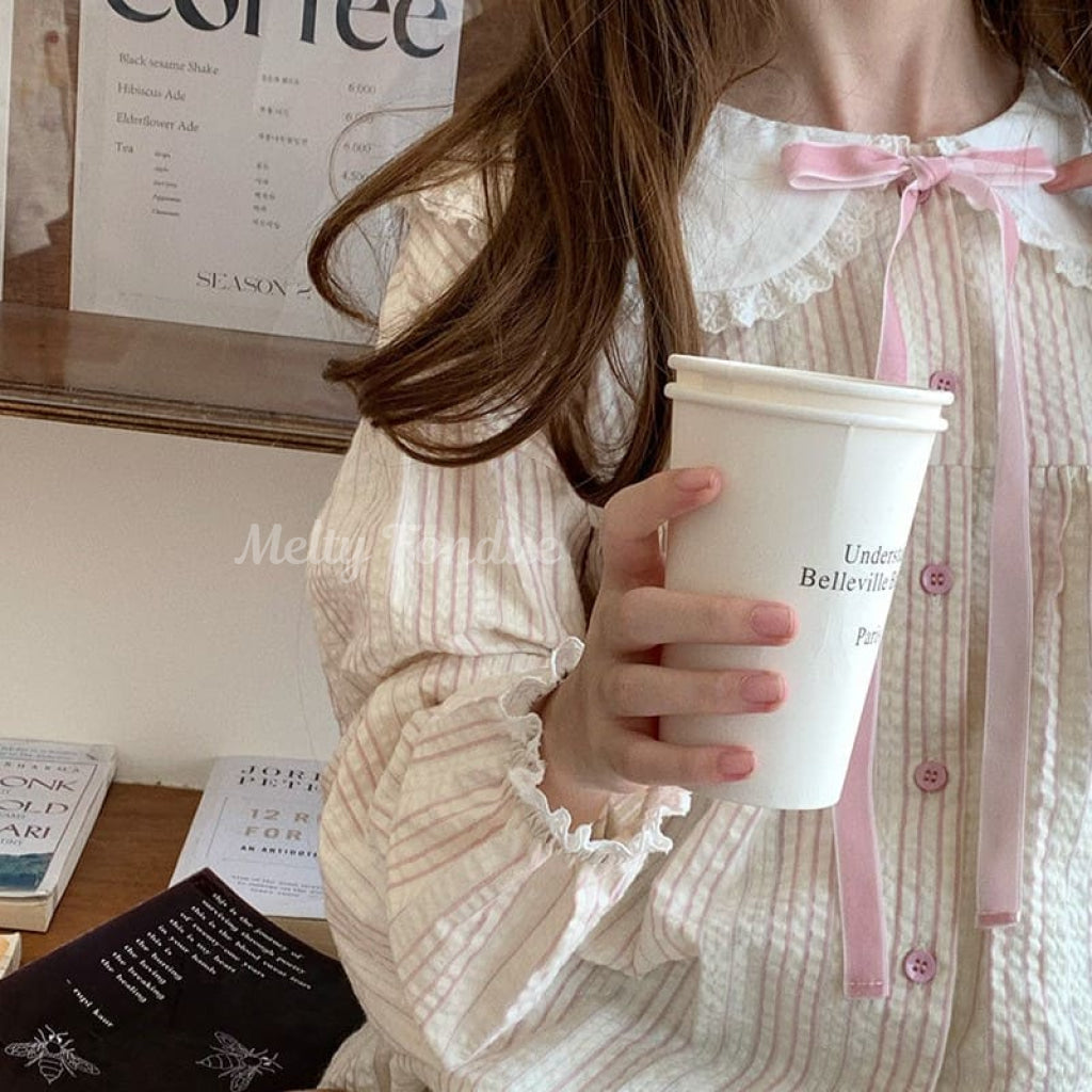 ・ピンクのリボンタイがフロントに添えられ、可愛さを引き立て。