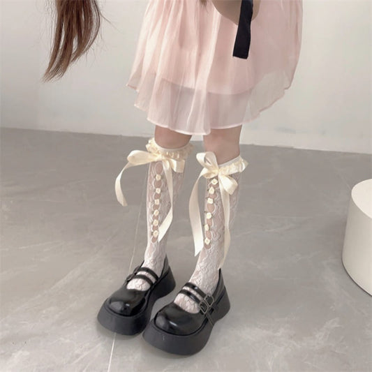 《リボンで仕上げる、ときめきの足もと》お姫様の花園ソックス(全2色)