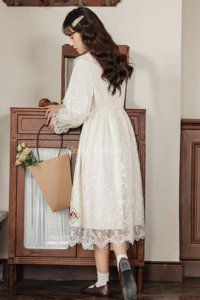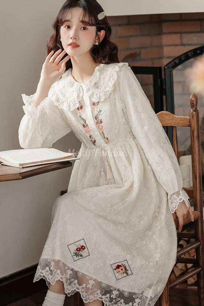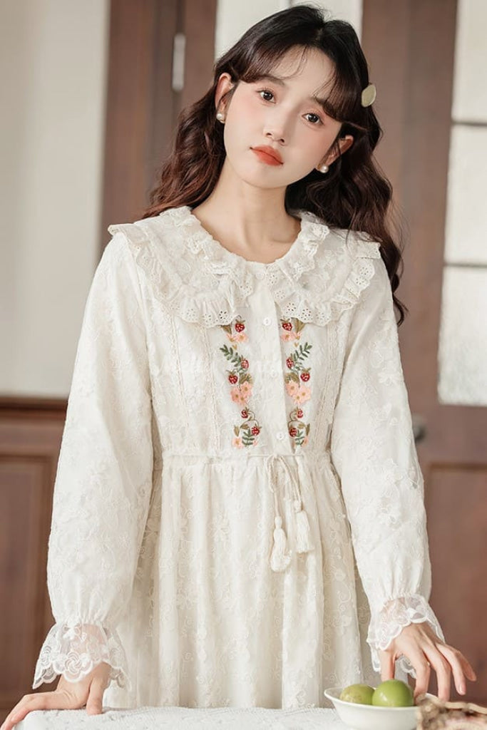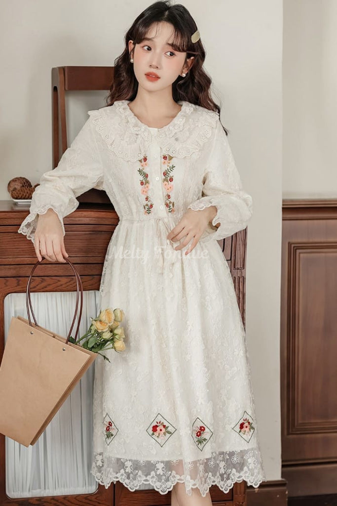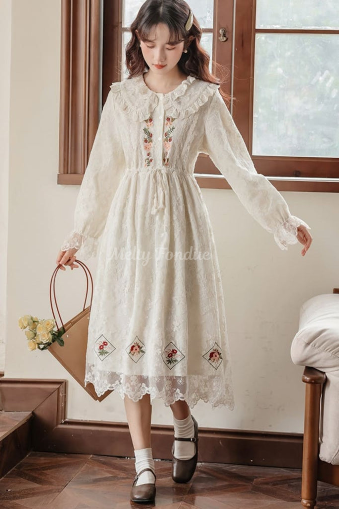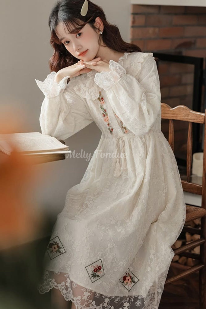 ・ピクニックに: 繊細な刺繍とレースが自然の中で映え、特別なひとときを彩ります。