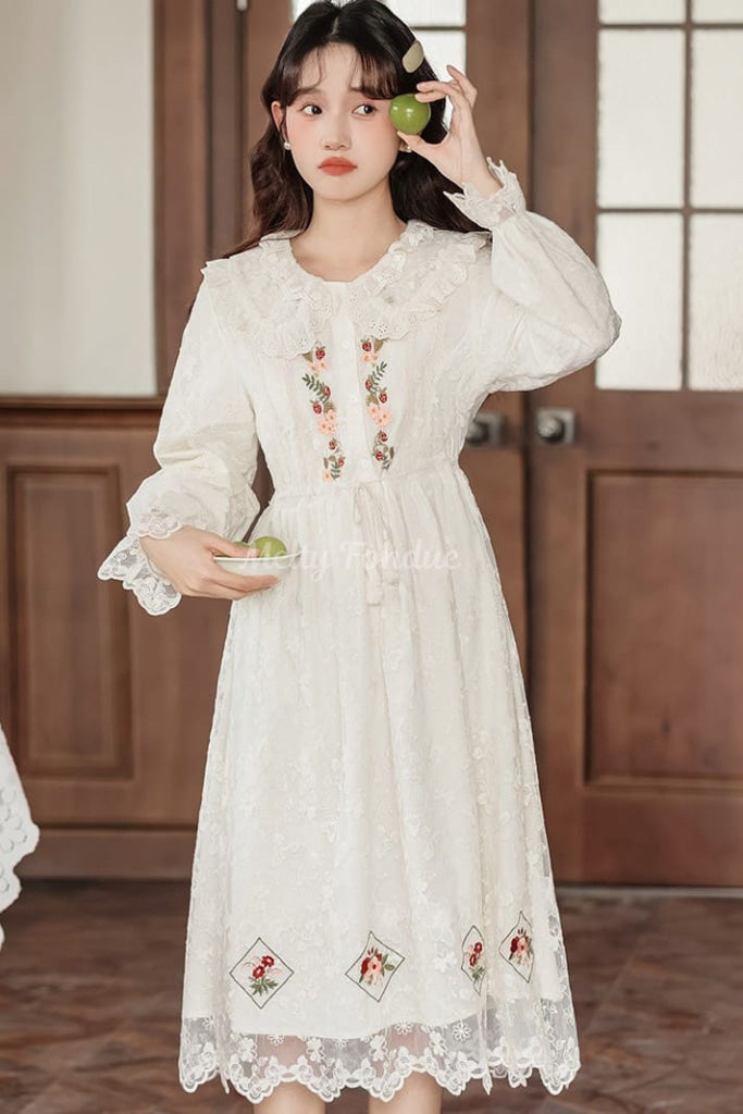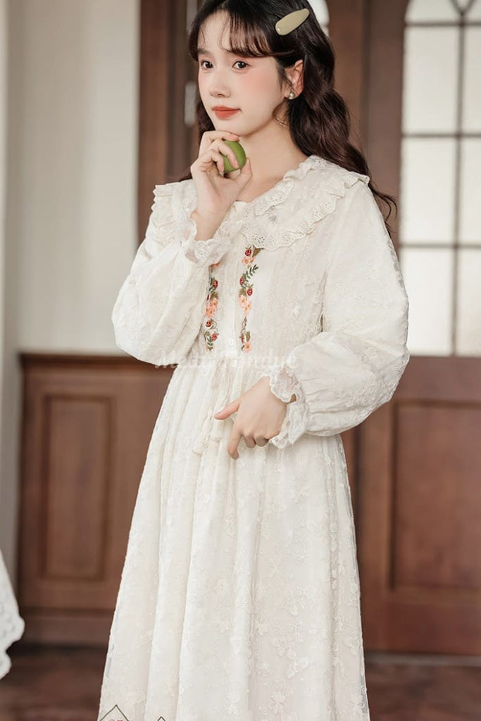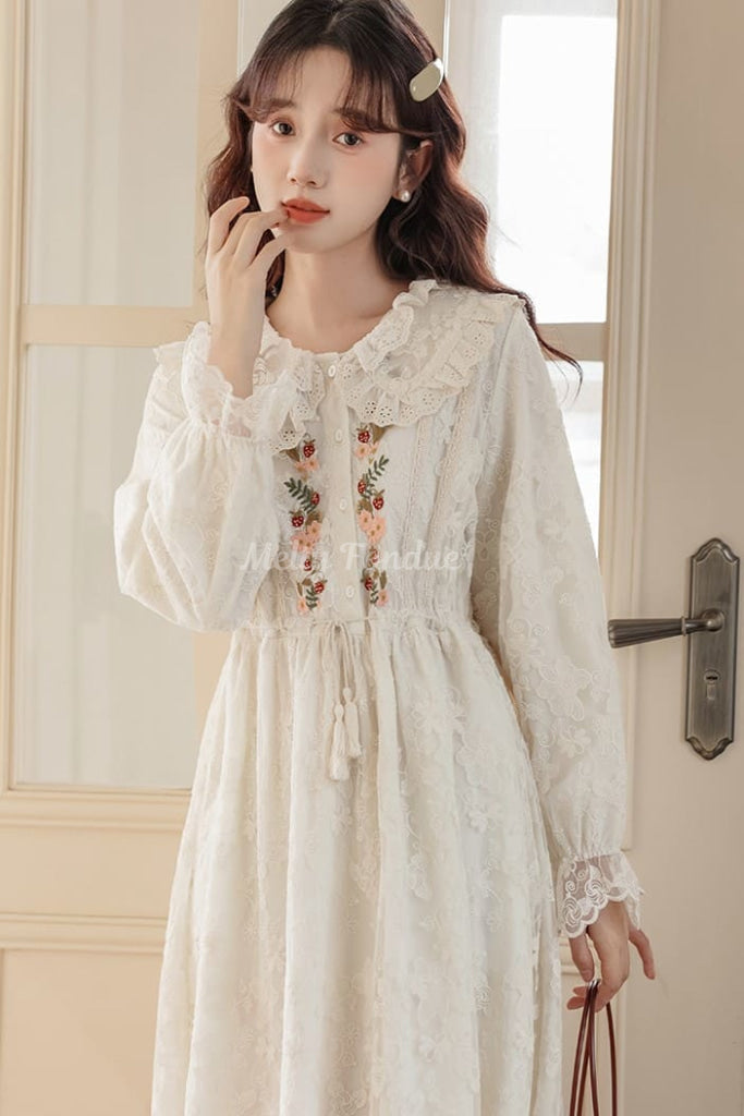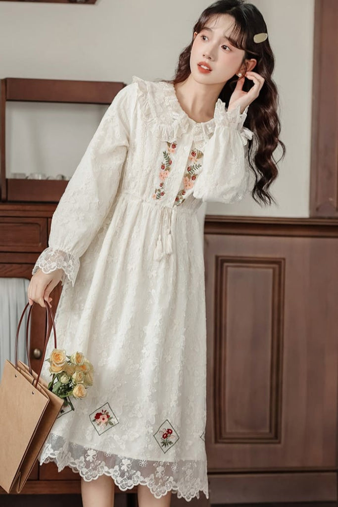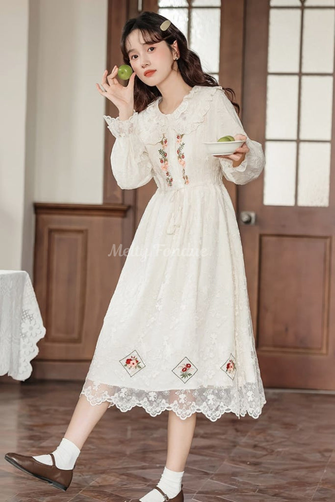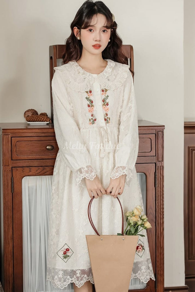 ・ピクニックに: 繊細な刺繍とレースが自然の中で映え、特別なひとときを彩ります。
