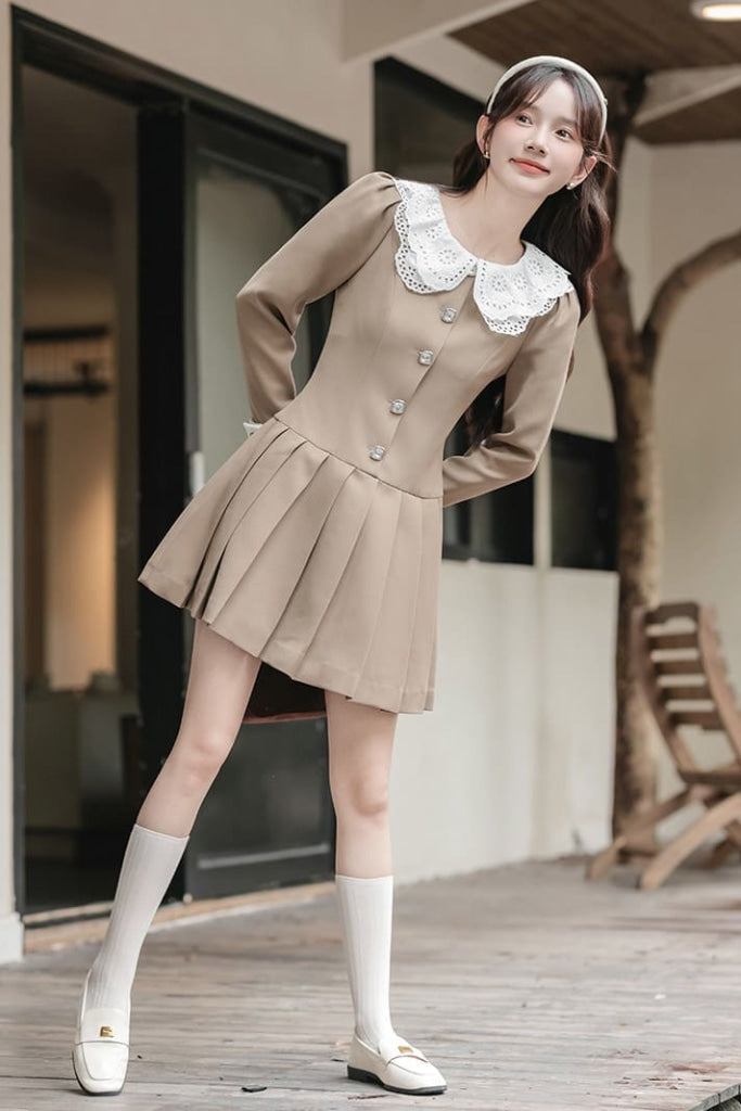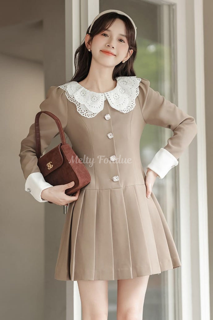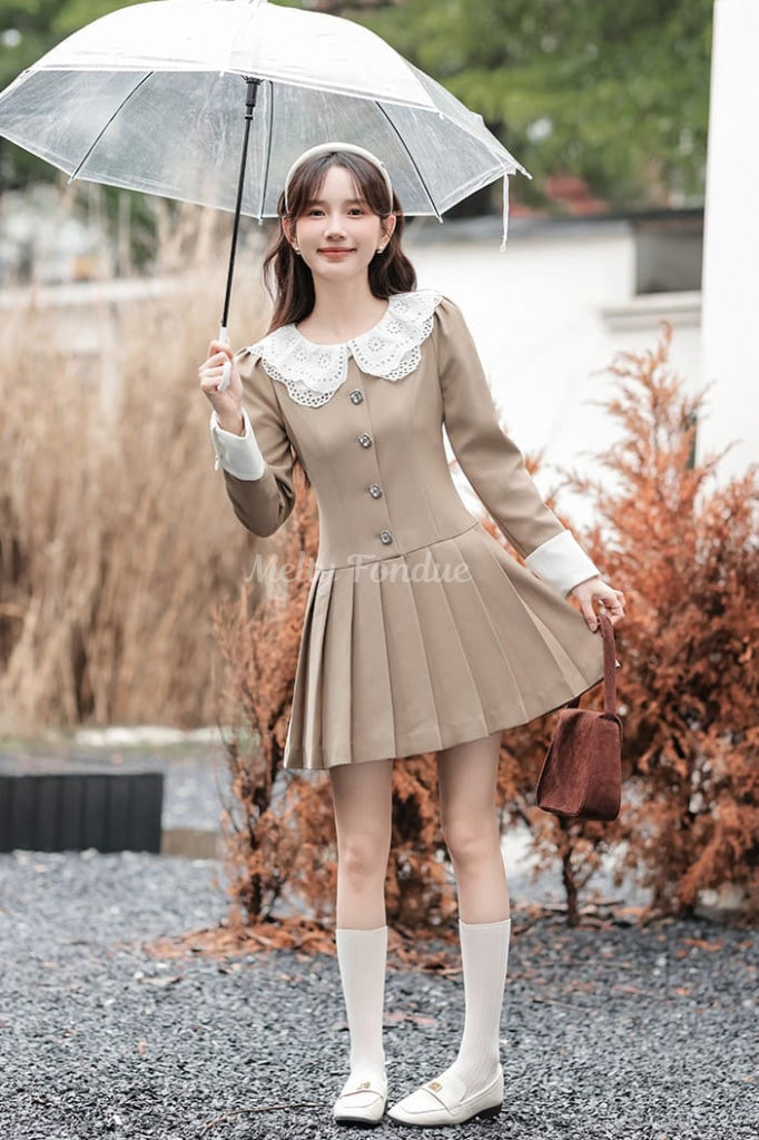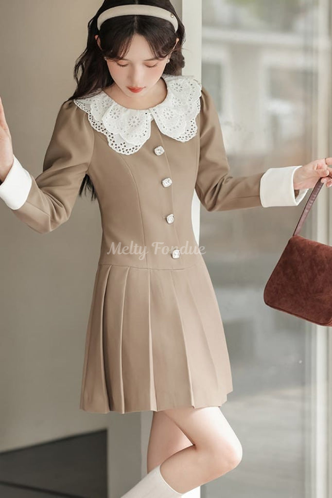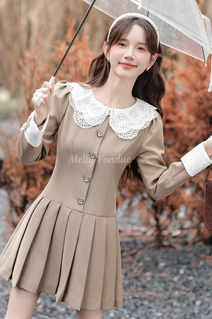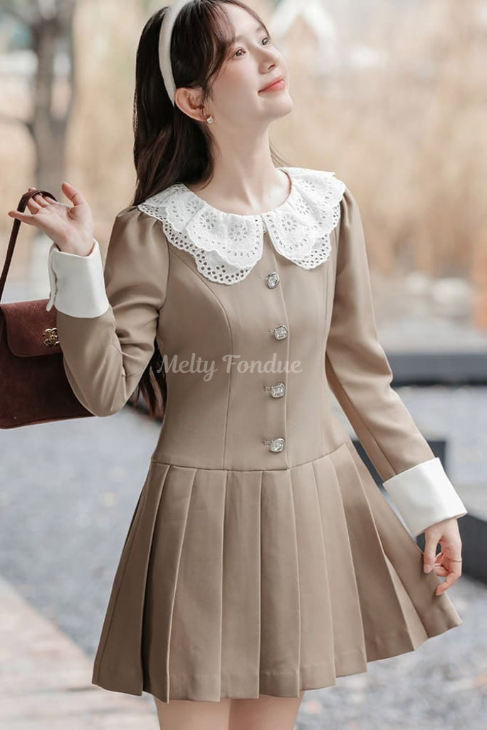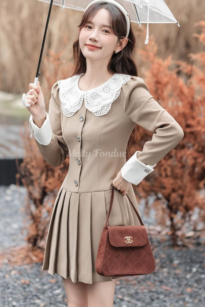 プリーツスカートと大きなレースカラーが特徴的で、まるでおとぎ話の中のプリンセスのような気分に浸れます。