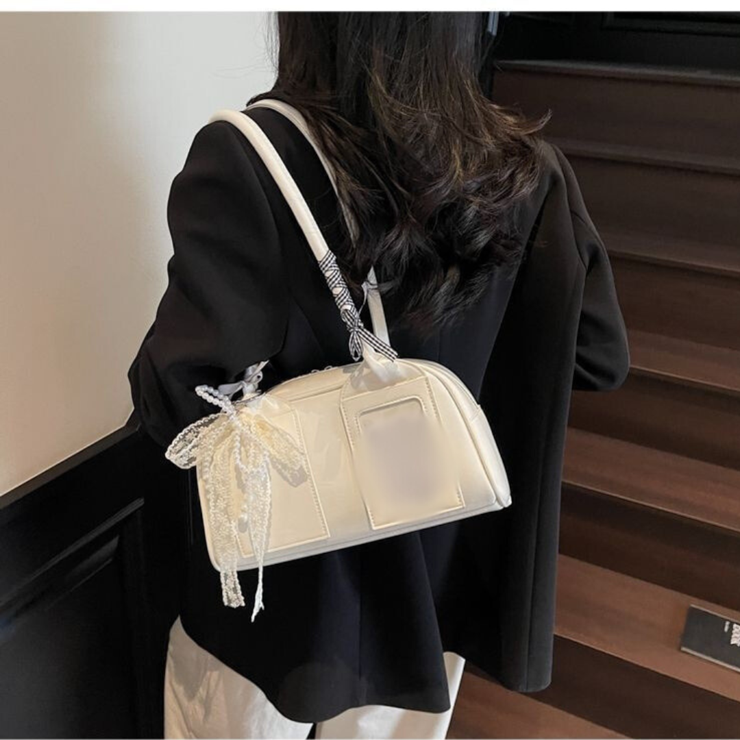 ・ソフトなレザー調素材で軽く、肩掛けもしやすいデザイン。