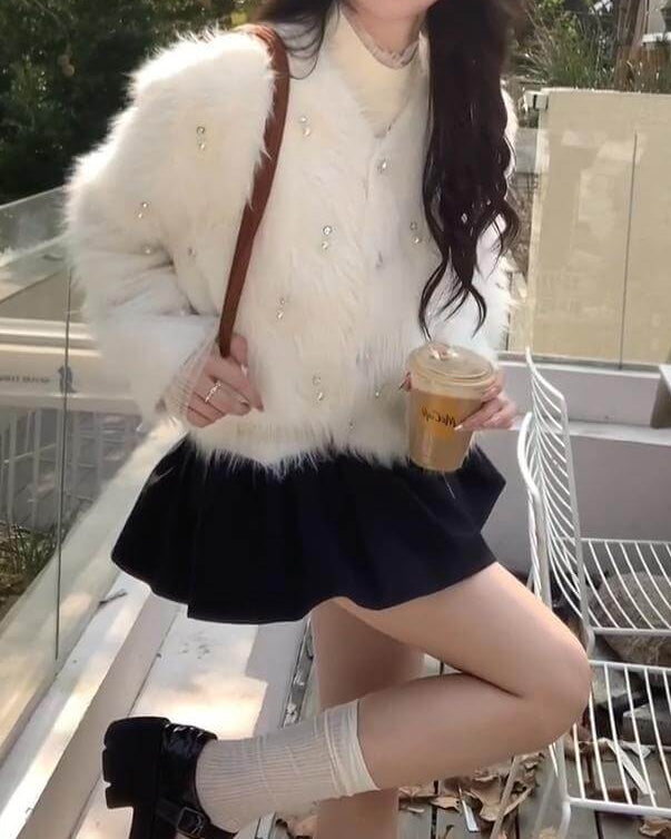 上品なフェイクファーが、まるで雪のように柔らかく肌を包み込む。