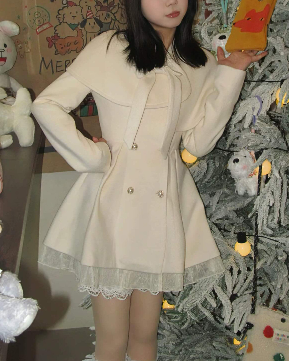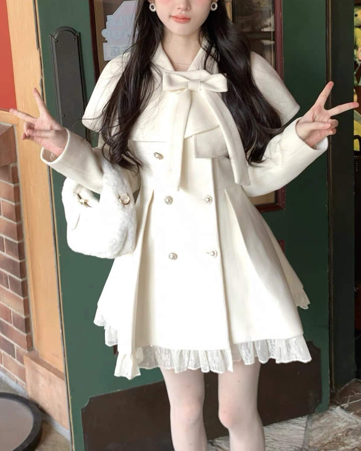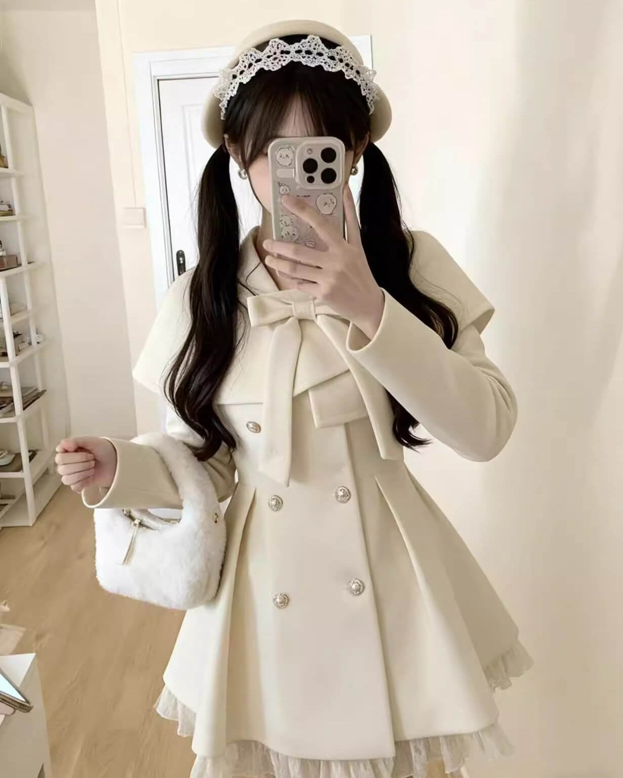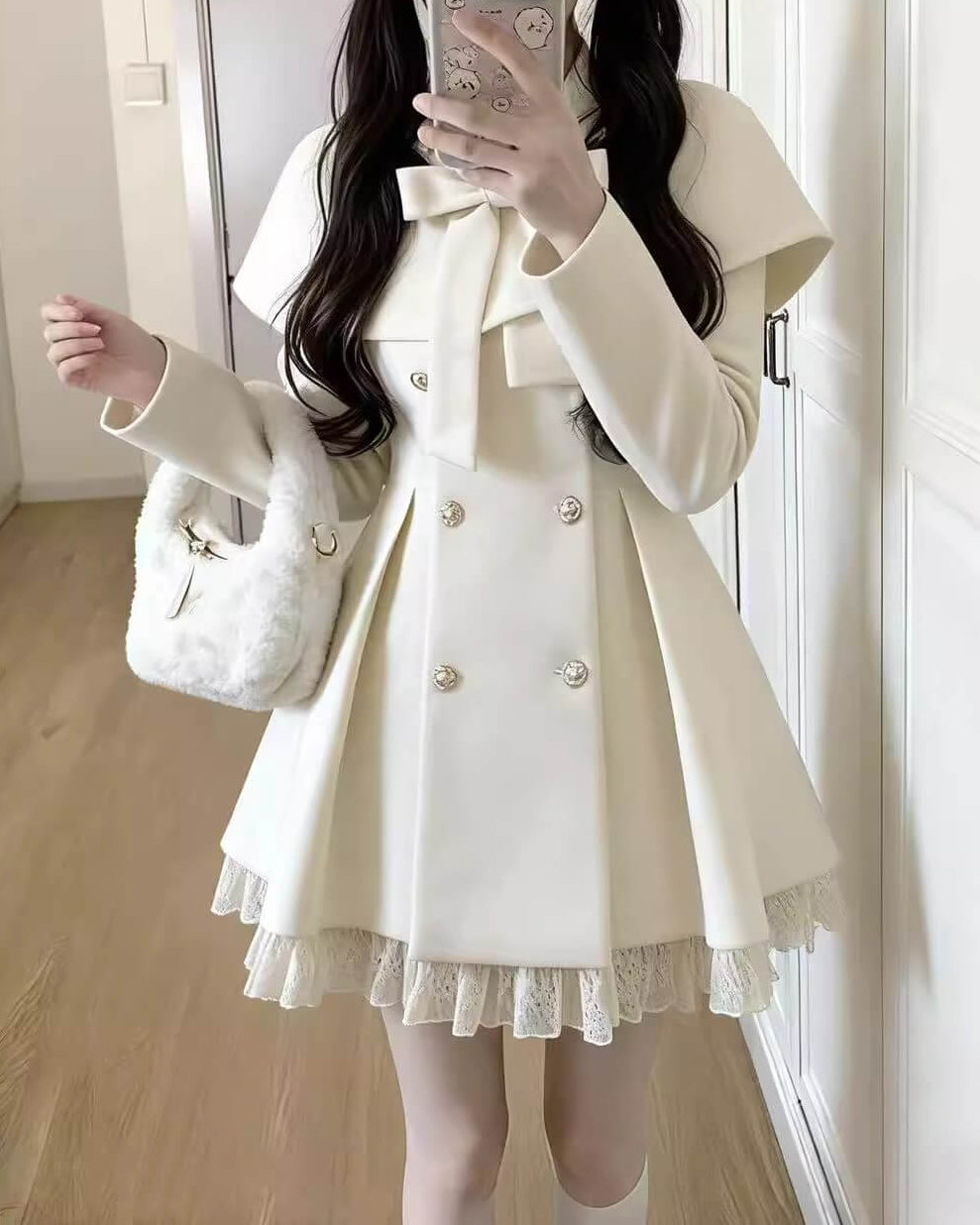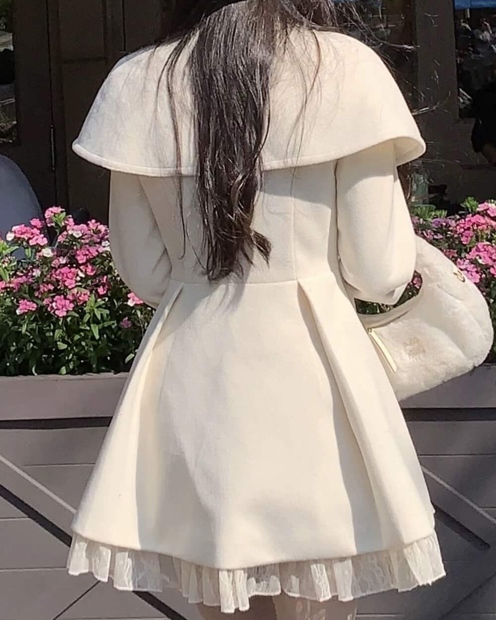 ・上品なホワイトカラーが冬景色に映えるロマンティックなアウター。