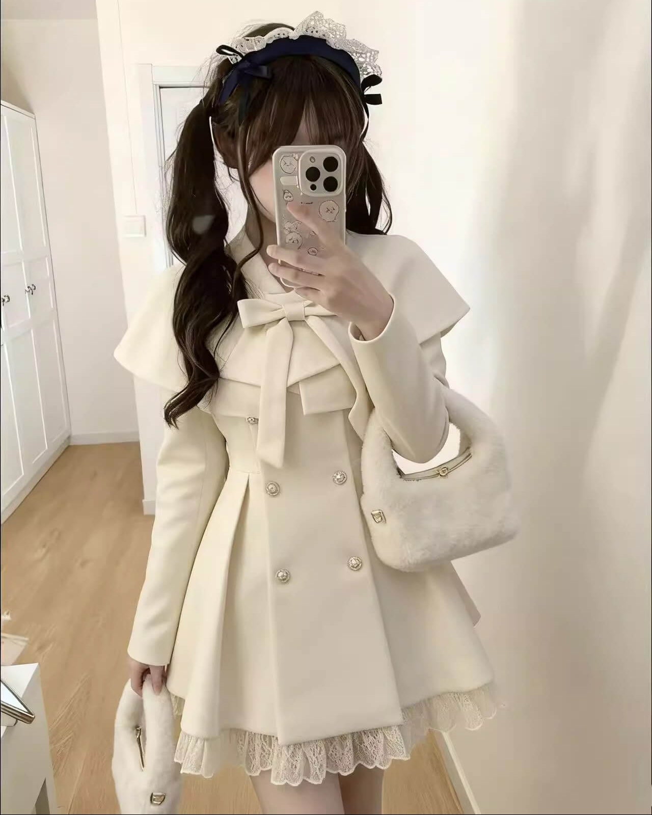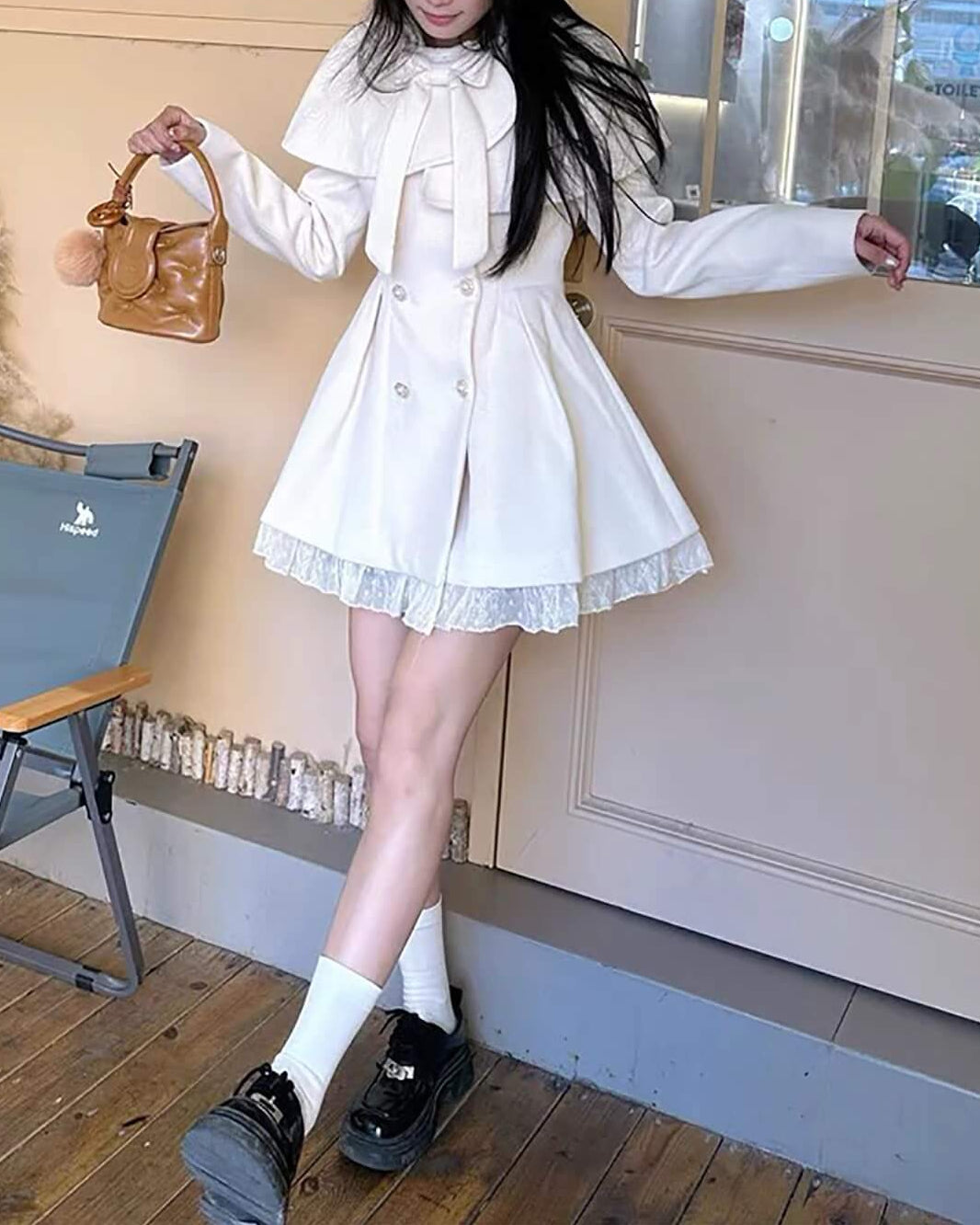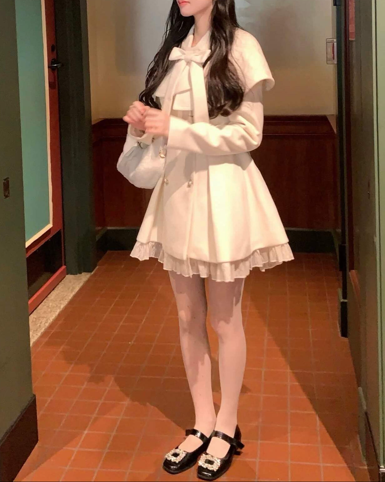 大きなリボンとケープデザインが可憐な印象を与える、冬のプリンセスコート