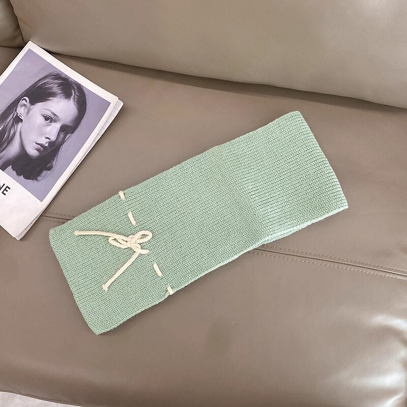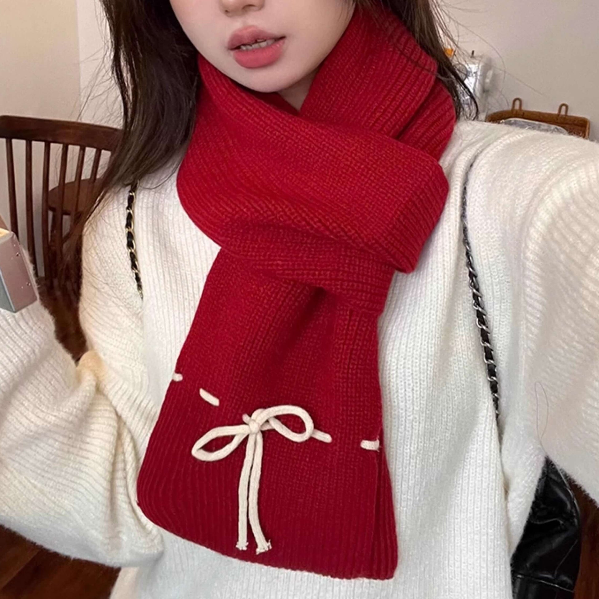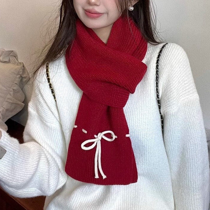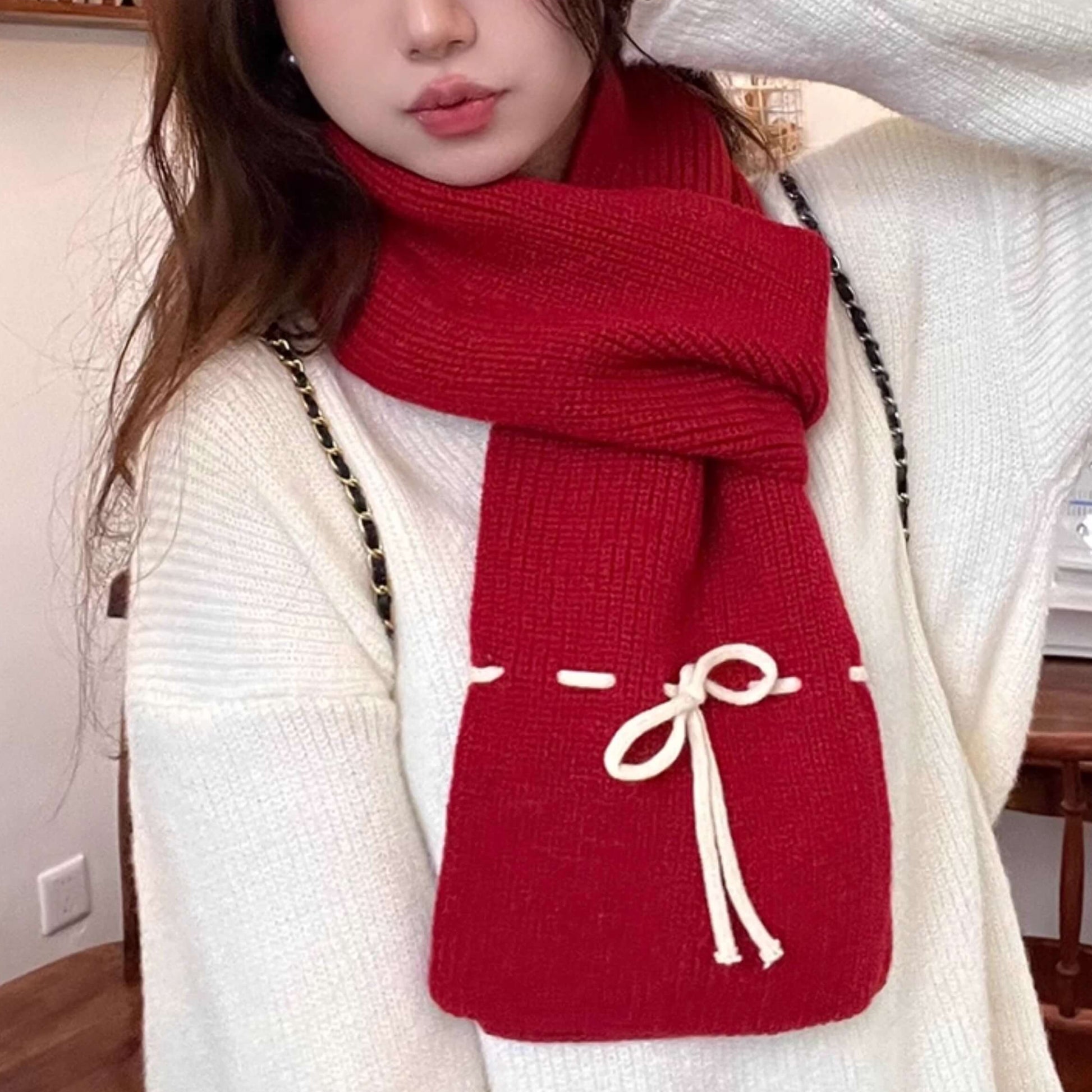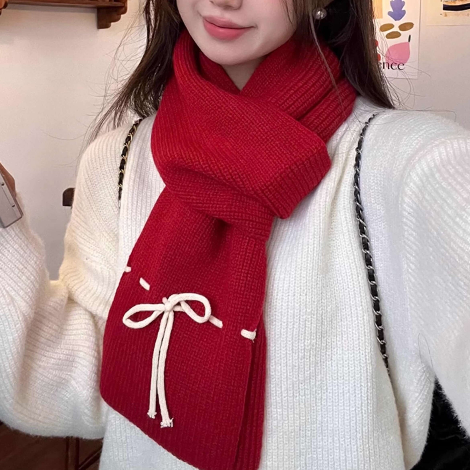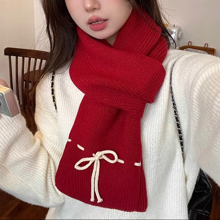 冬の首元を彩る、リボン結びデザインのふんわりニットマフラー。