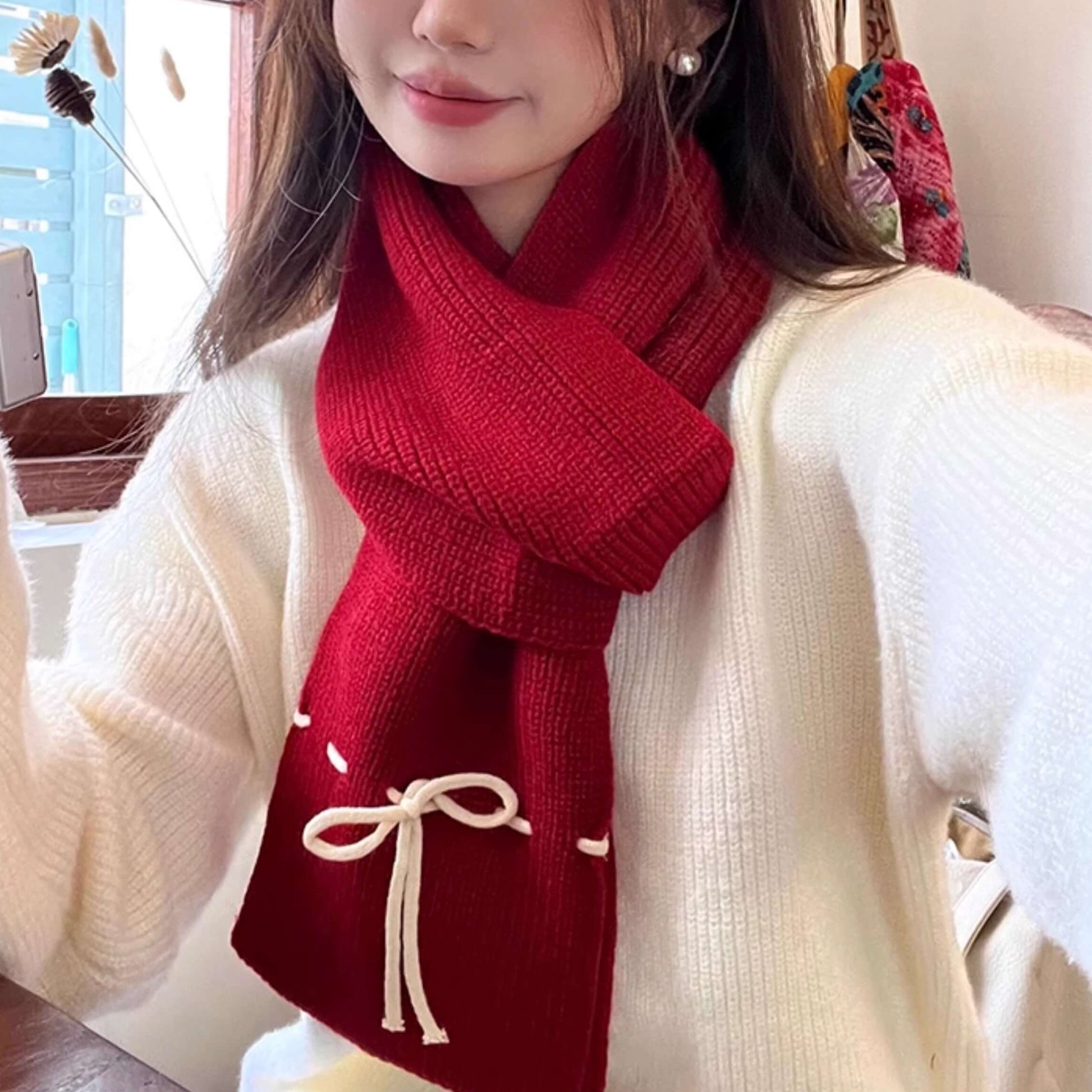 《防寒も可愛さも、これひとつで》恋色リボンのぬくもりマフラー(全6色)