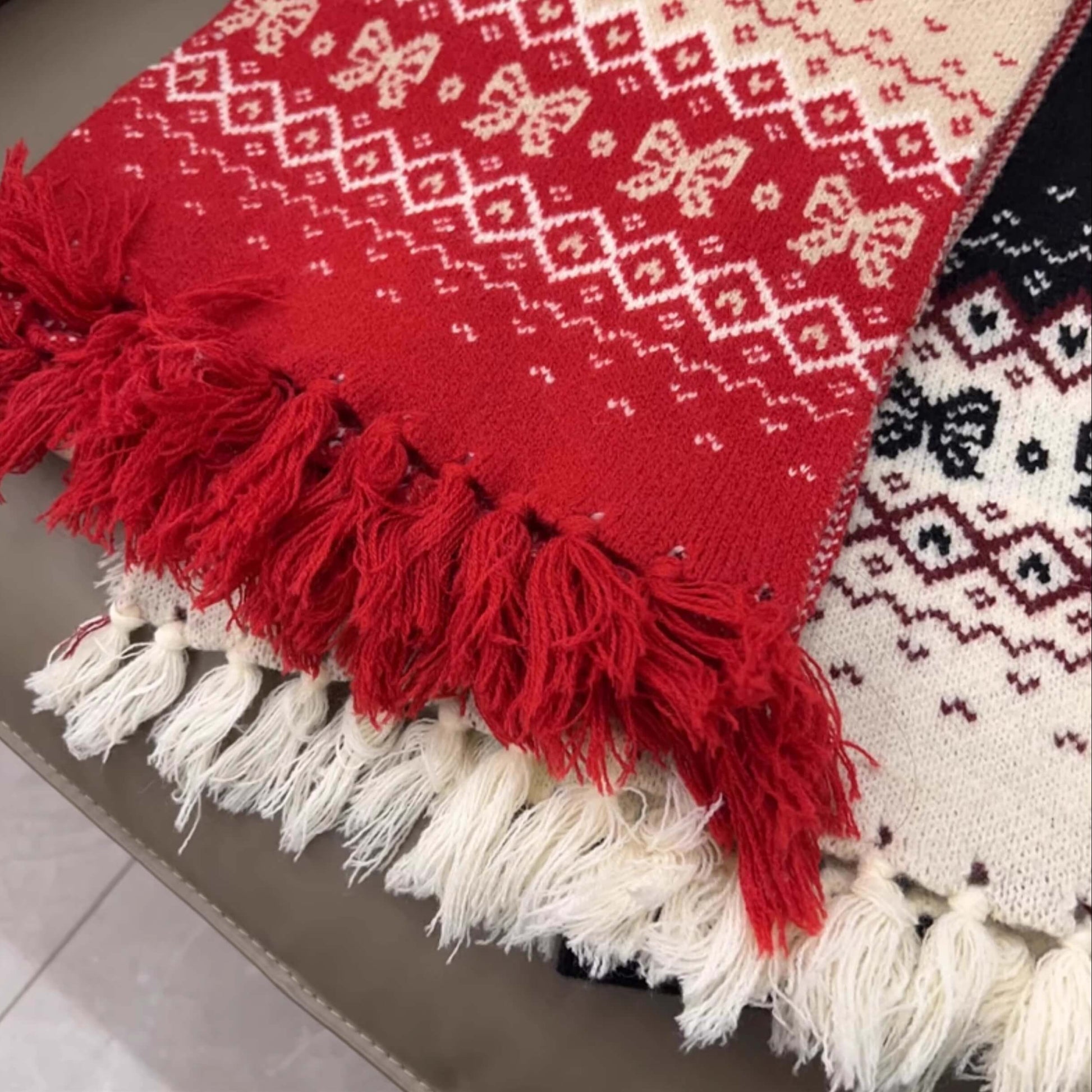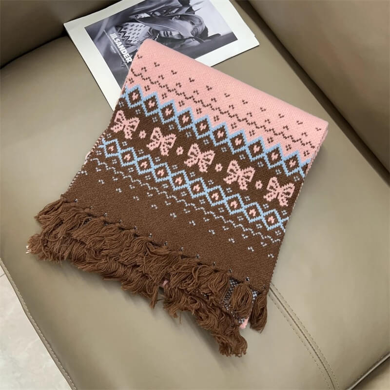 冬らしいノルディック柄の中にリボンを忍ばせたロマンティックなマフラーです。