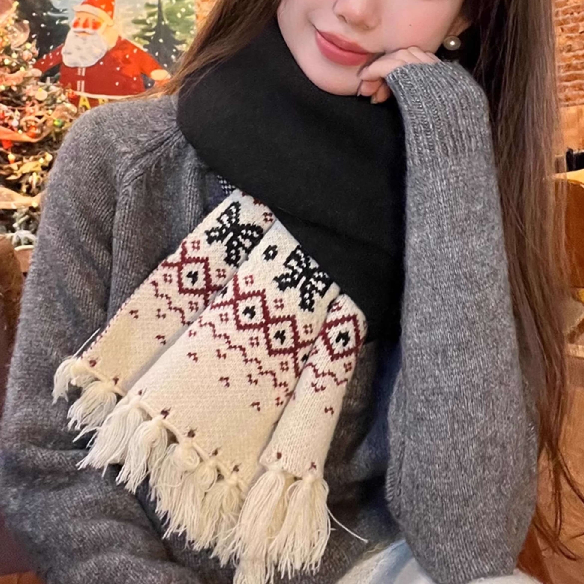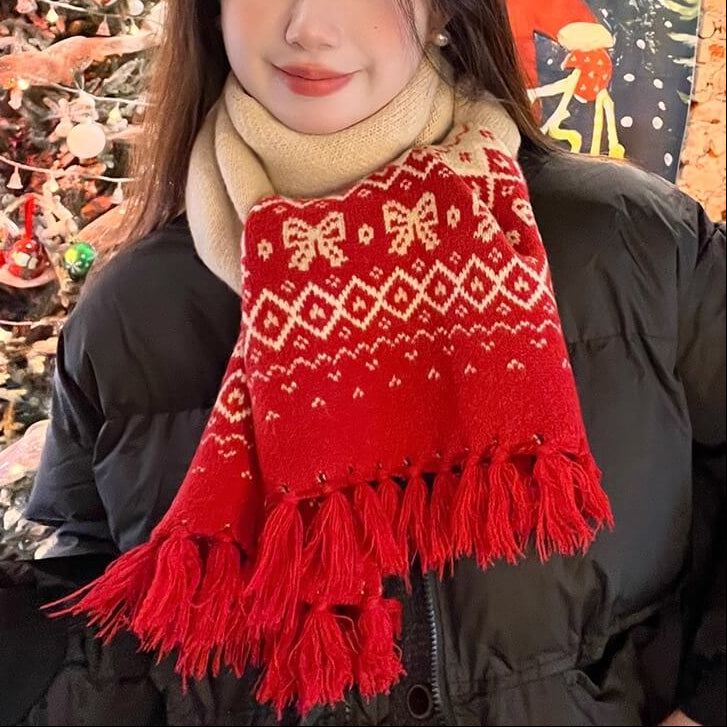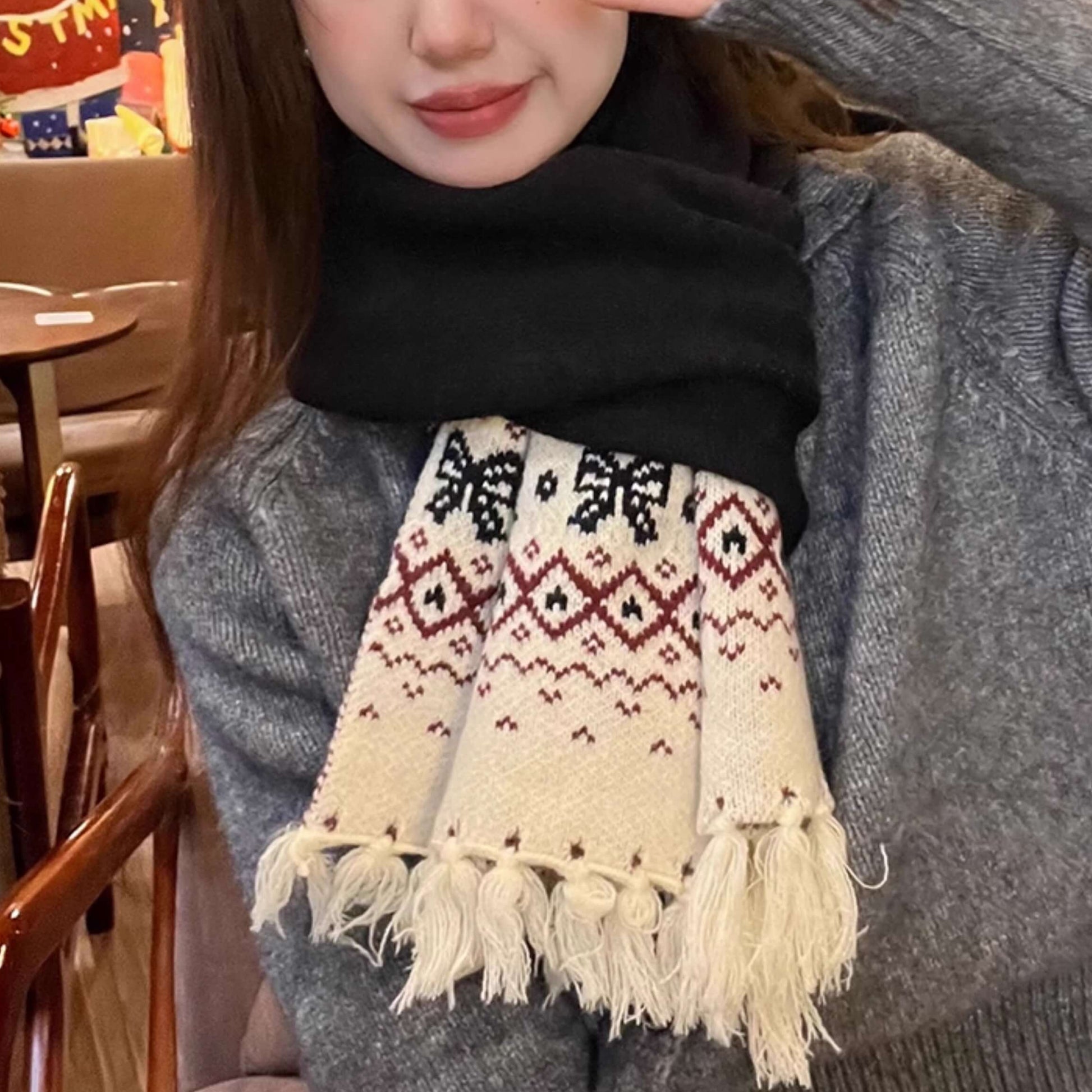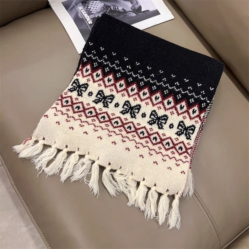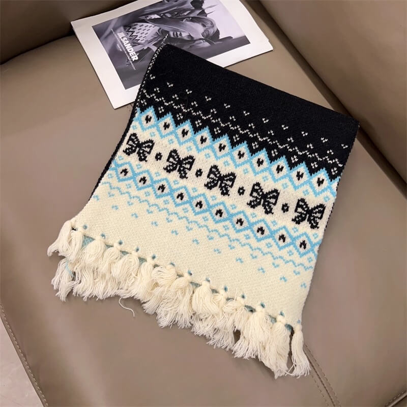 冬の街で映える、ノルディック柄とリボンモチーフが可愛いプリンセスマフラー