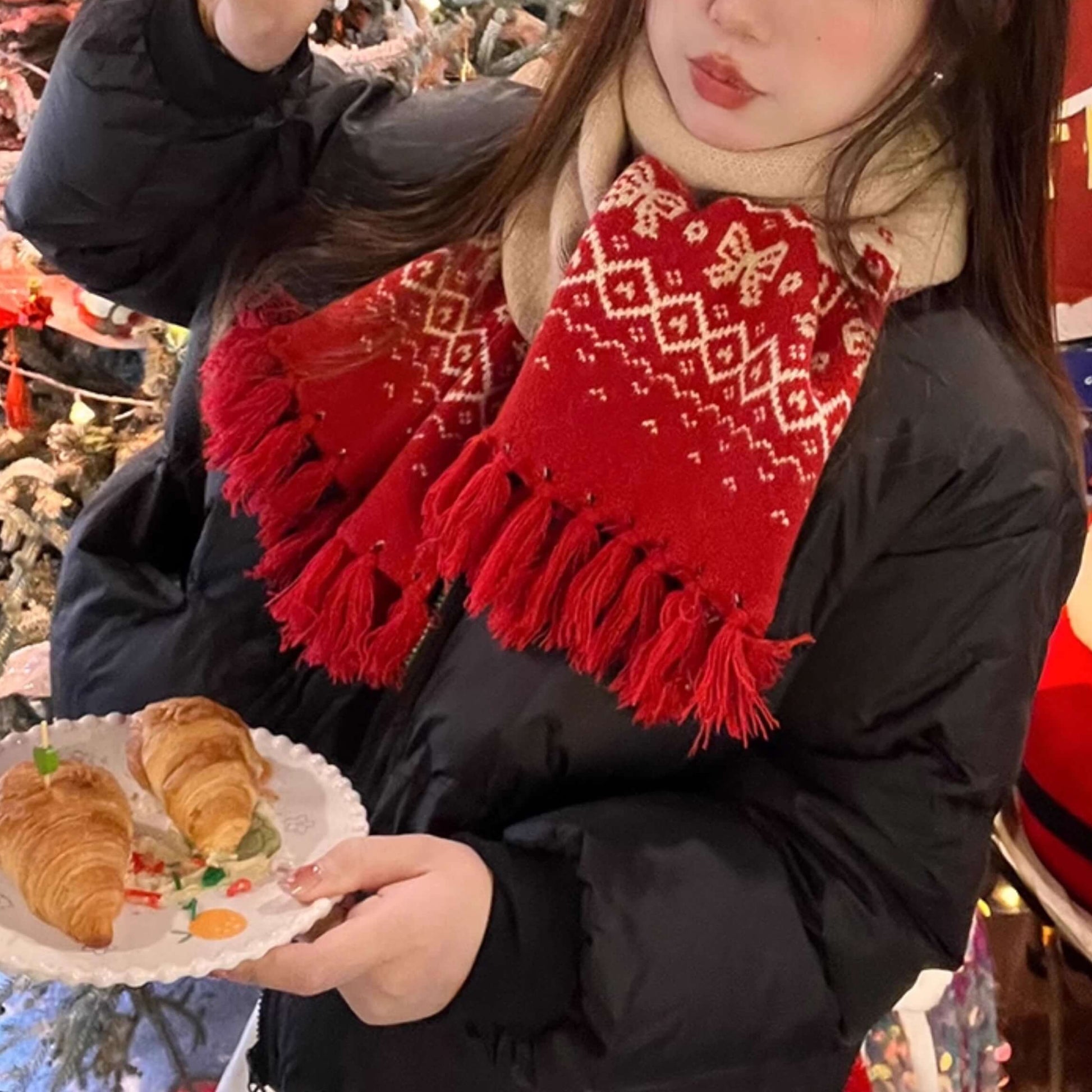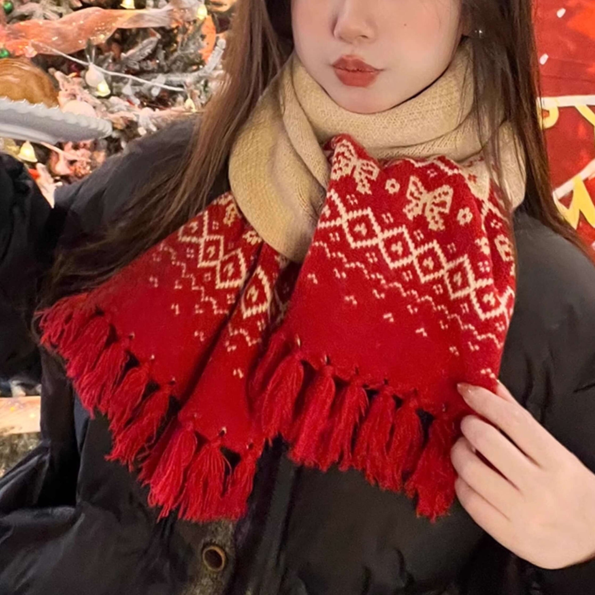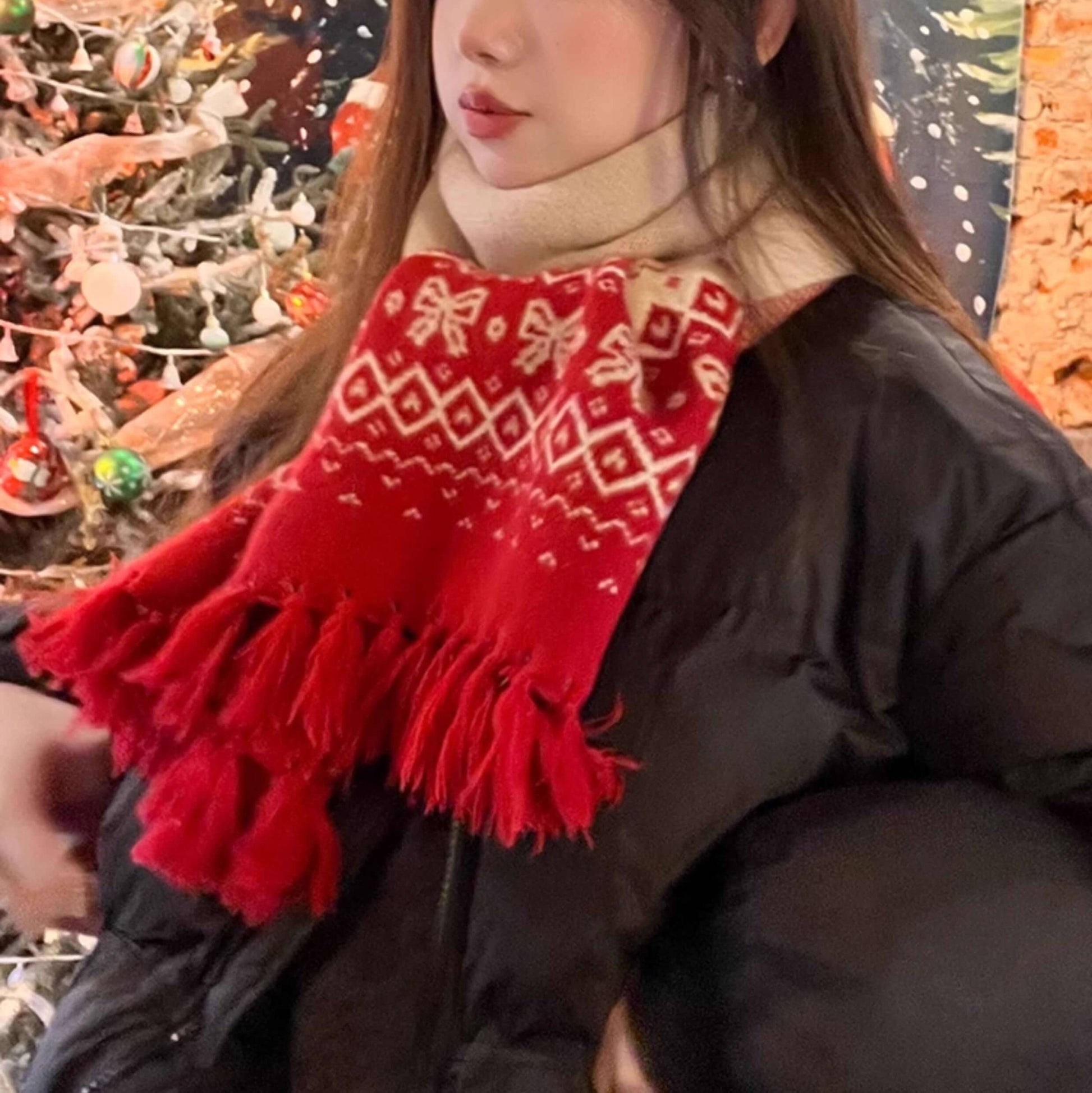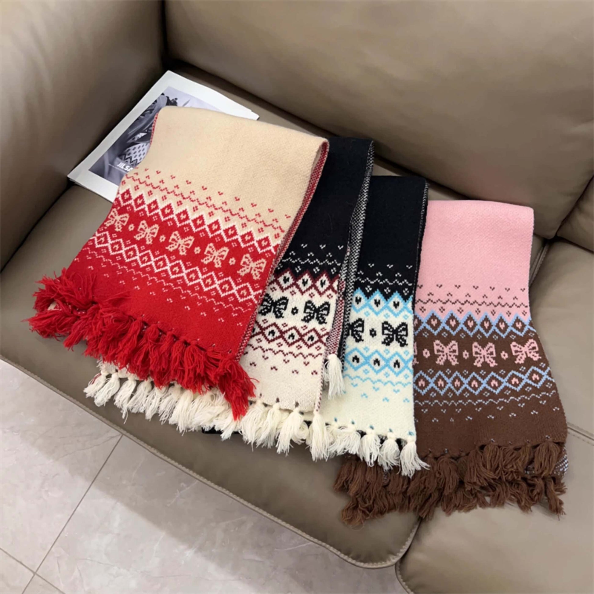 冬の街で映える、ノルディック柄とリボンモチーフが可愛いプリンセスマフラー