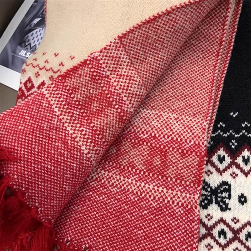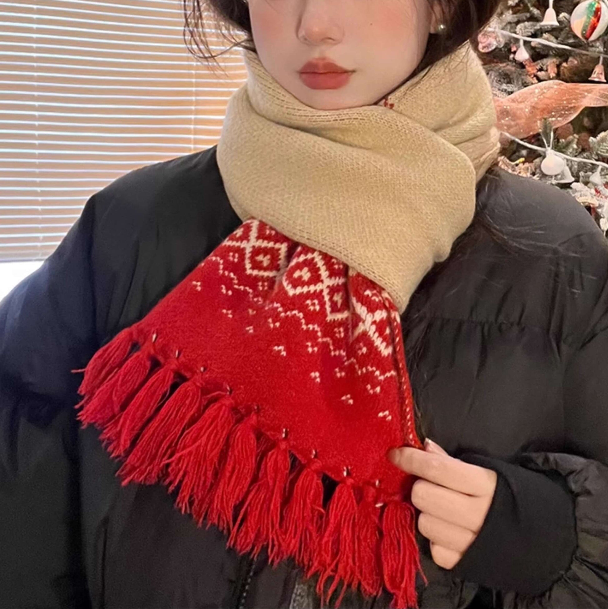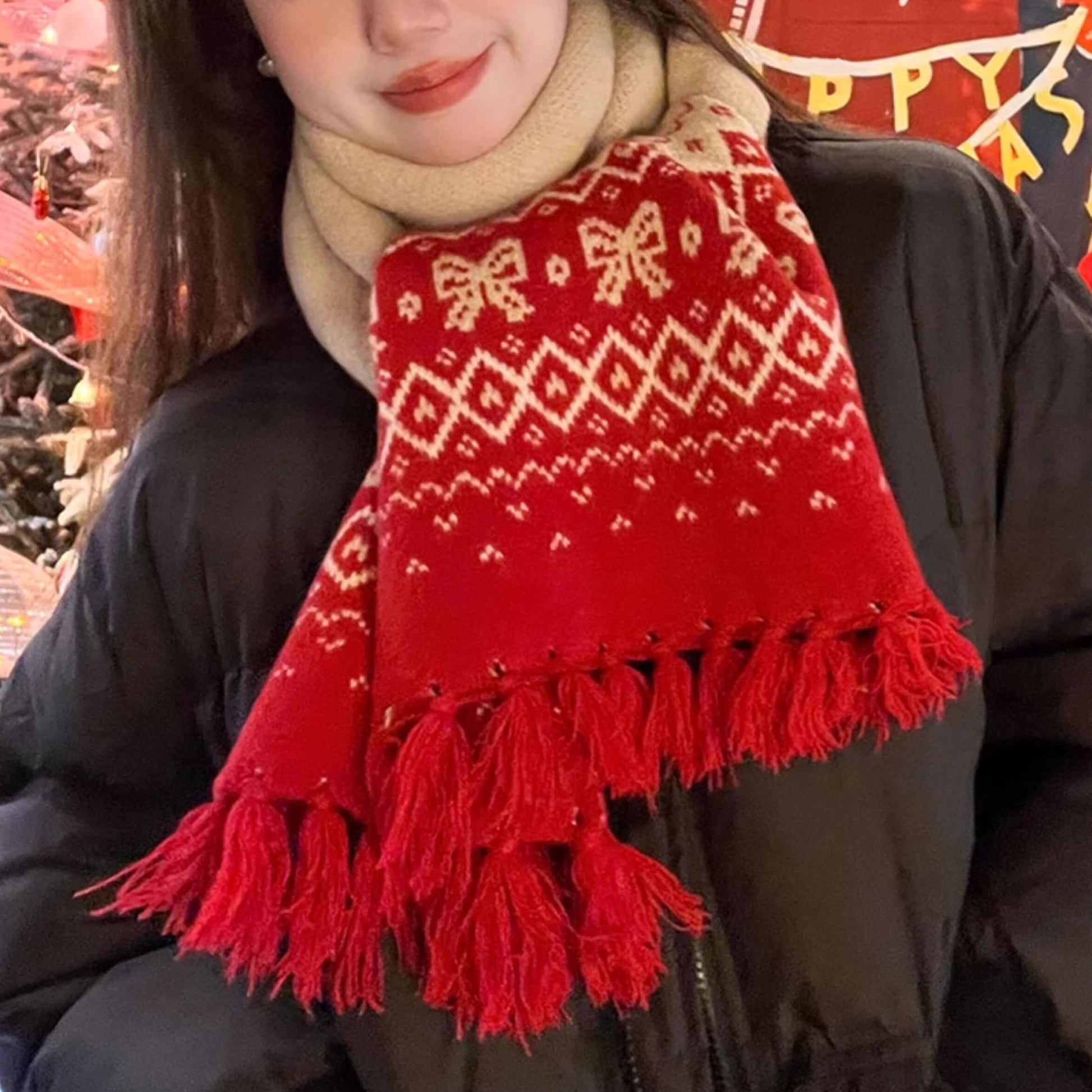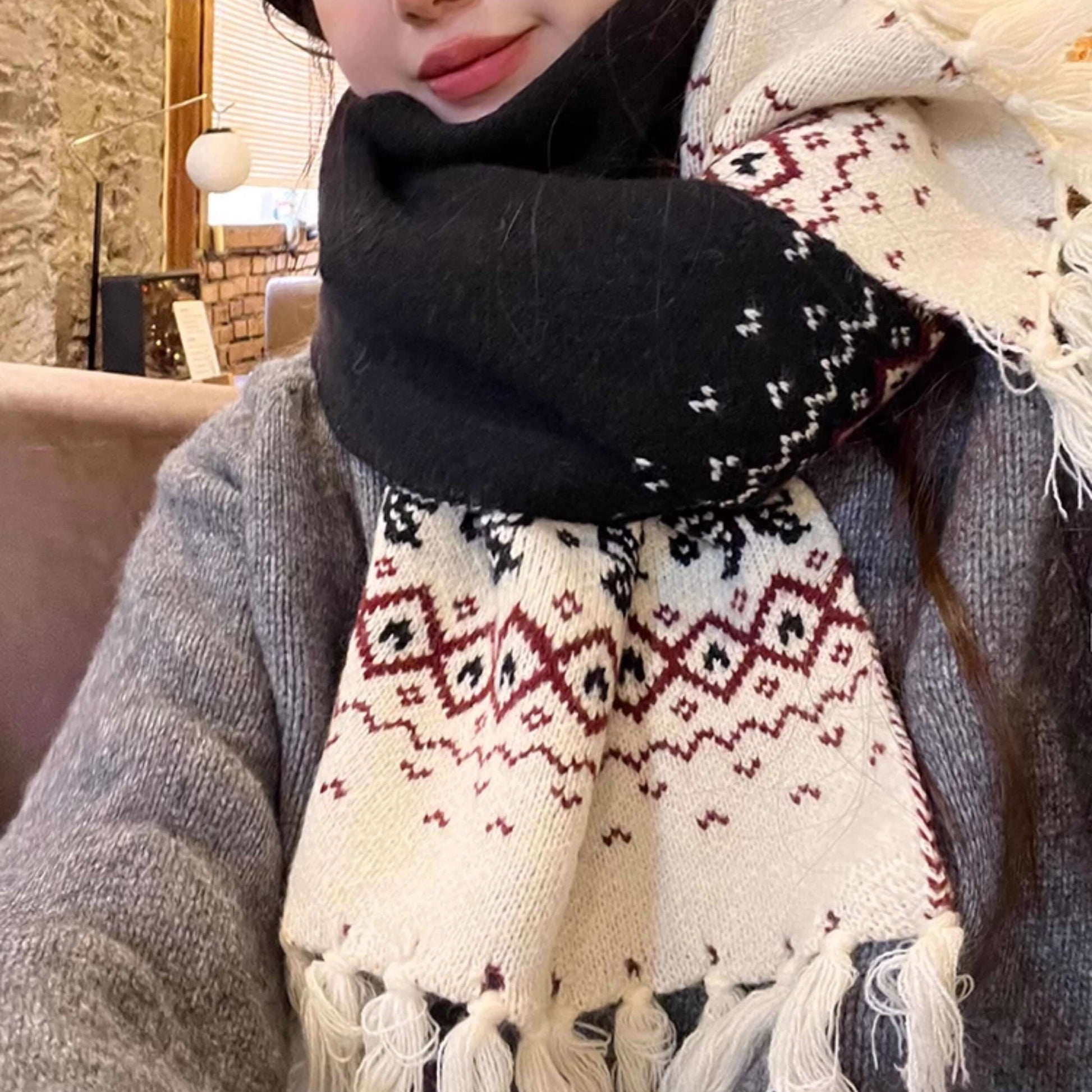 冬の街で映える、ノルディック柄とリボンモチーフが可愛いプリンセスマフラー