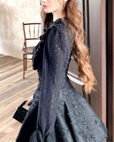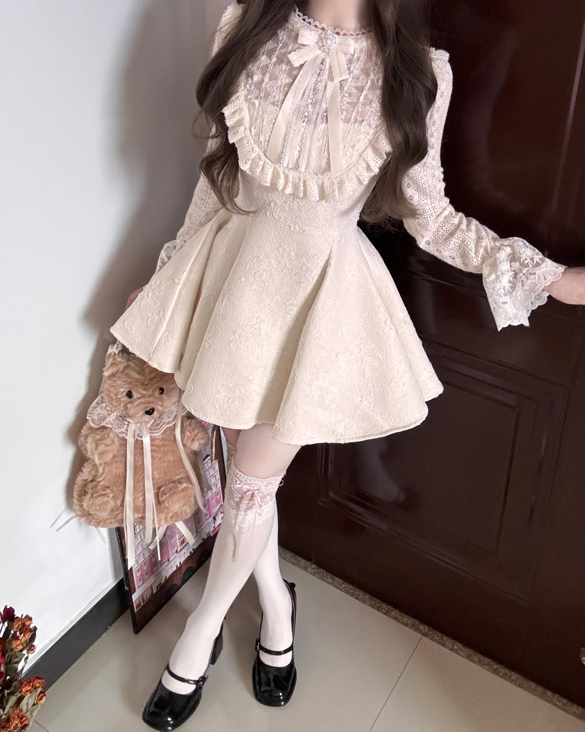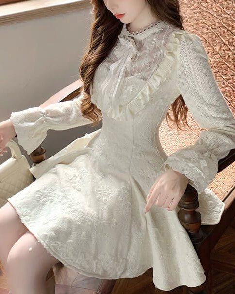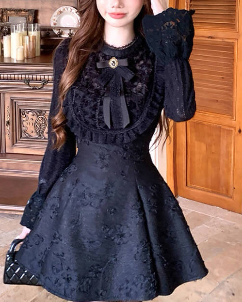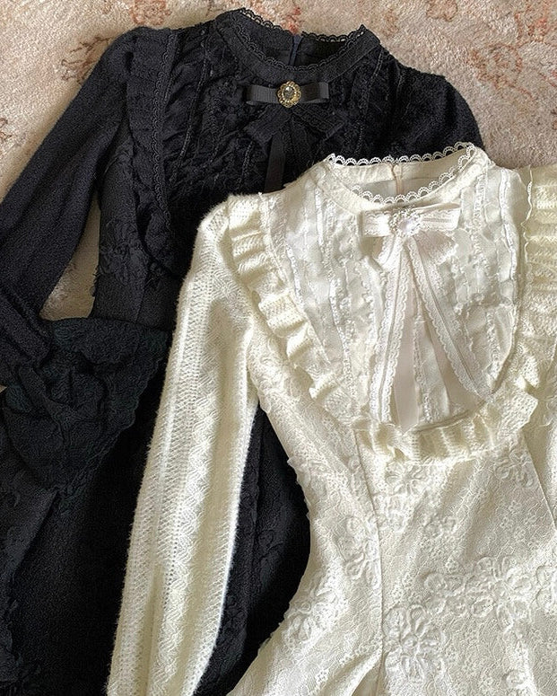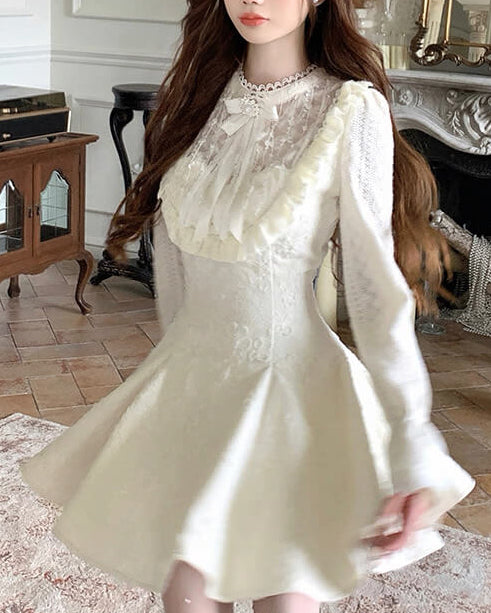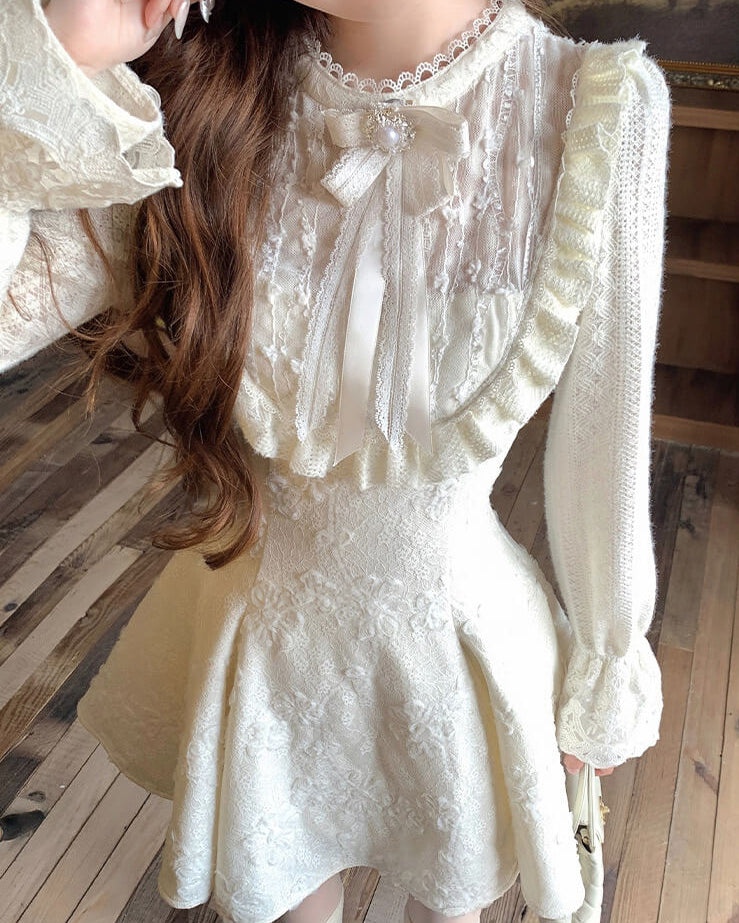繊細なレースが胸元を彩る、気品あふれるワンピース。
