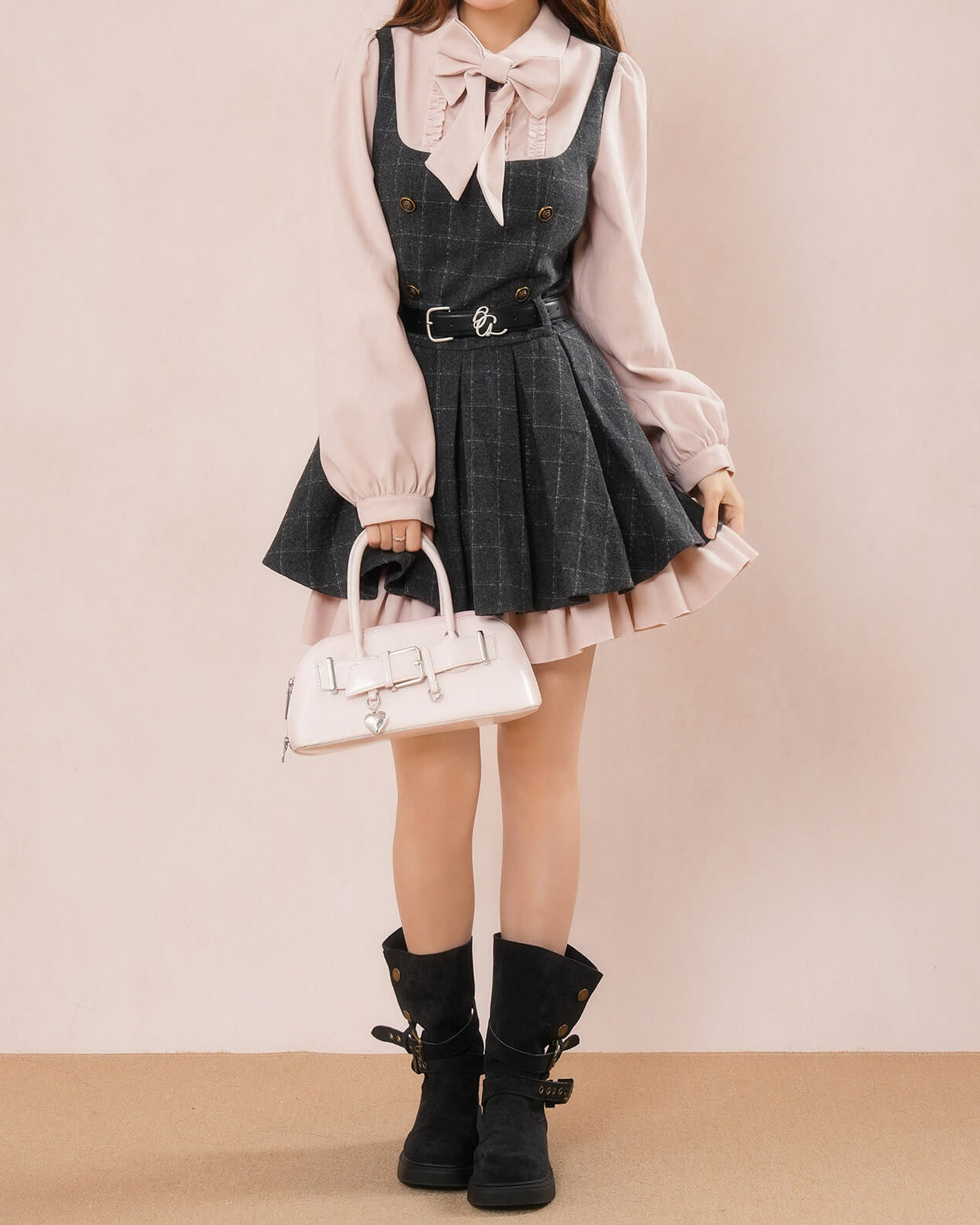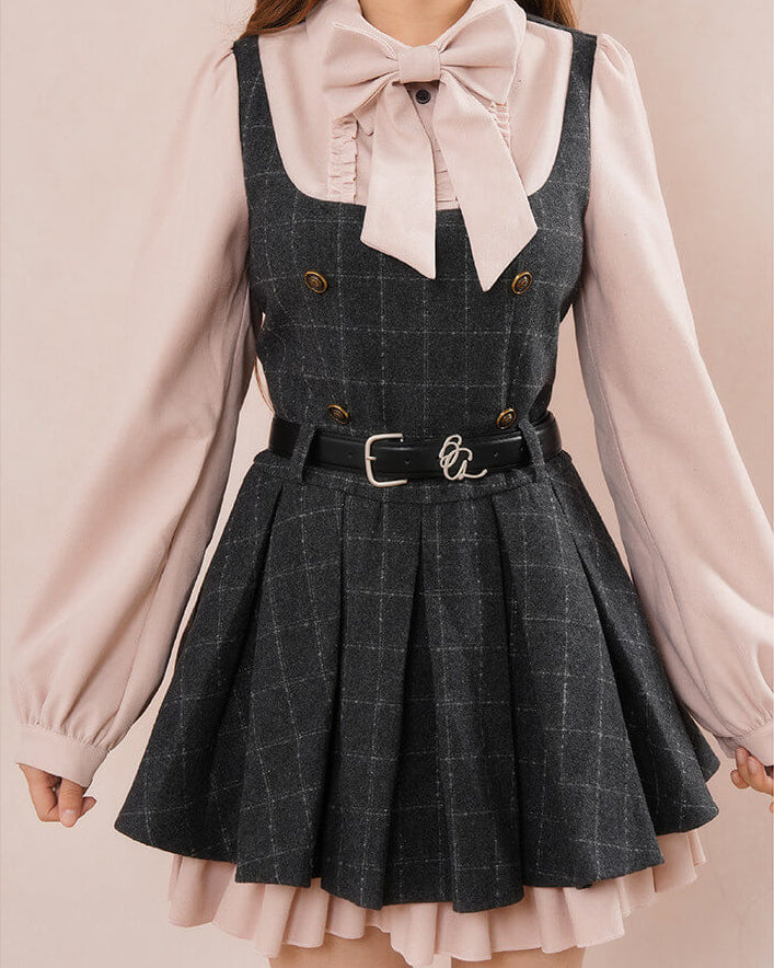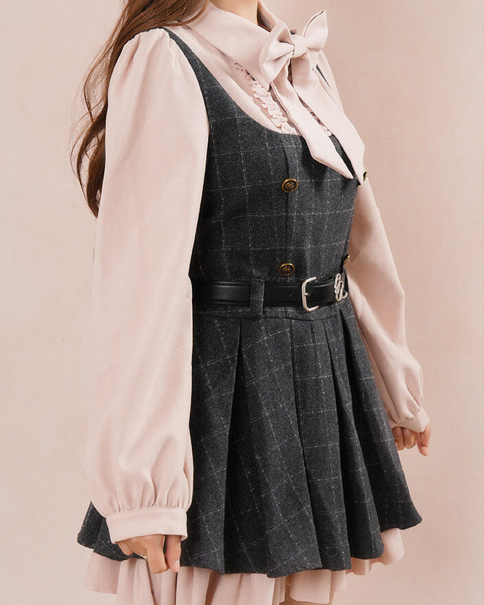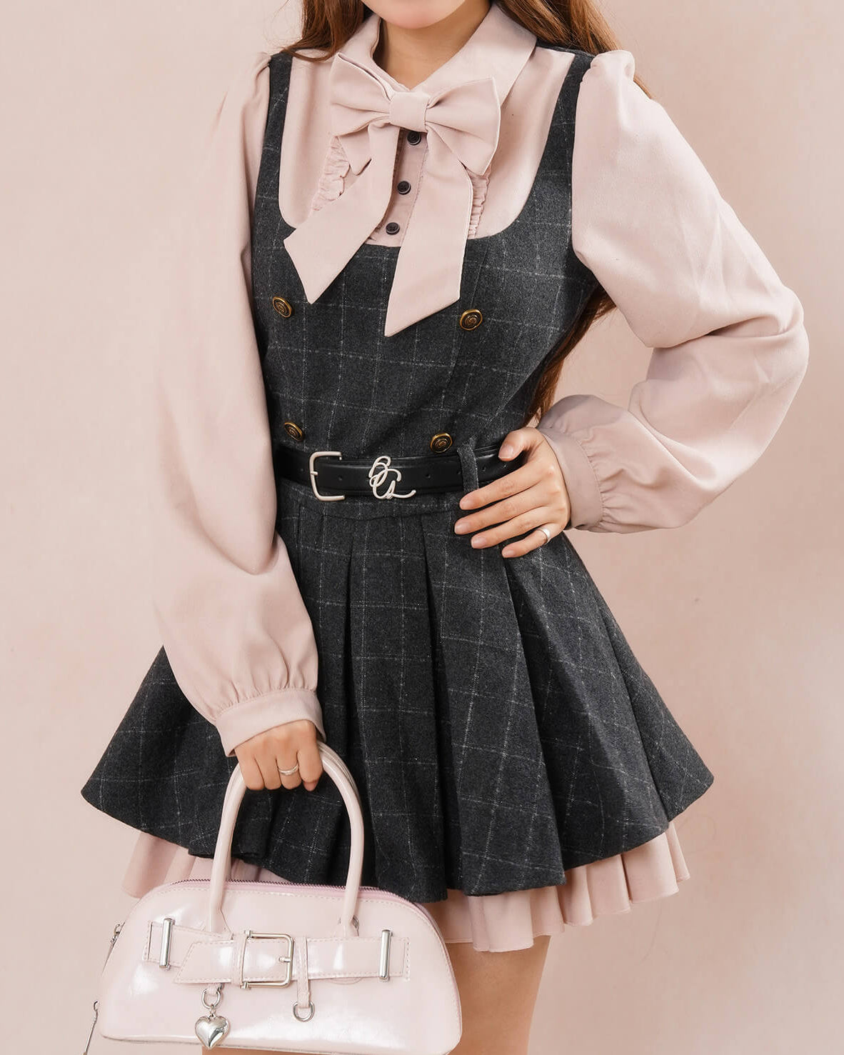 甘いフリルとクラシカルなチェック柄のバランスが絶妙で、着るだけでデートにもお出かけにもぴったりな華やかさが生まれます。