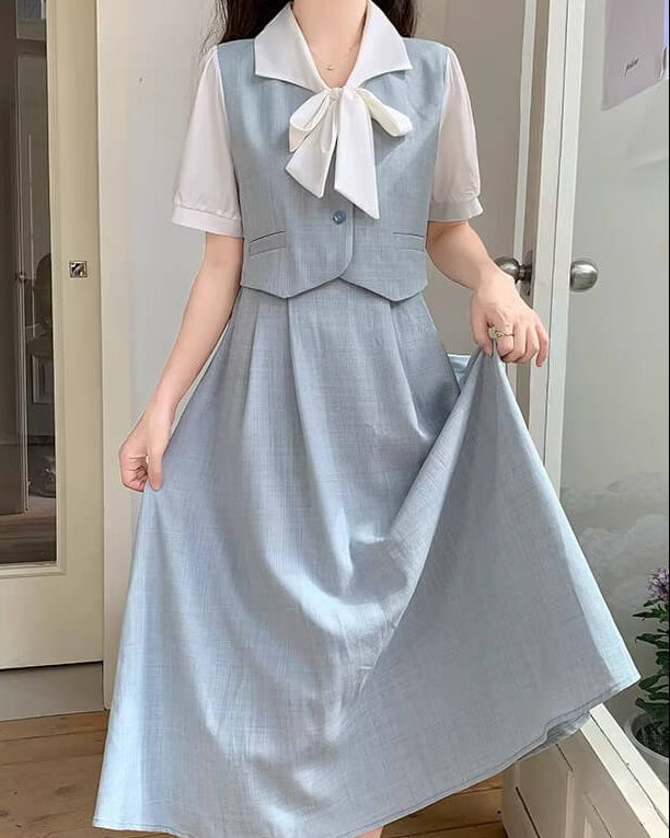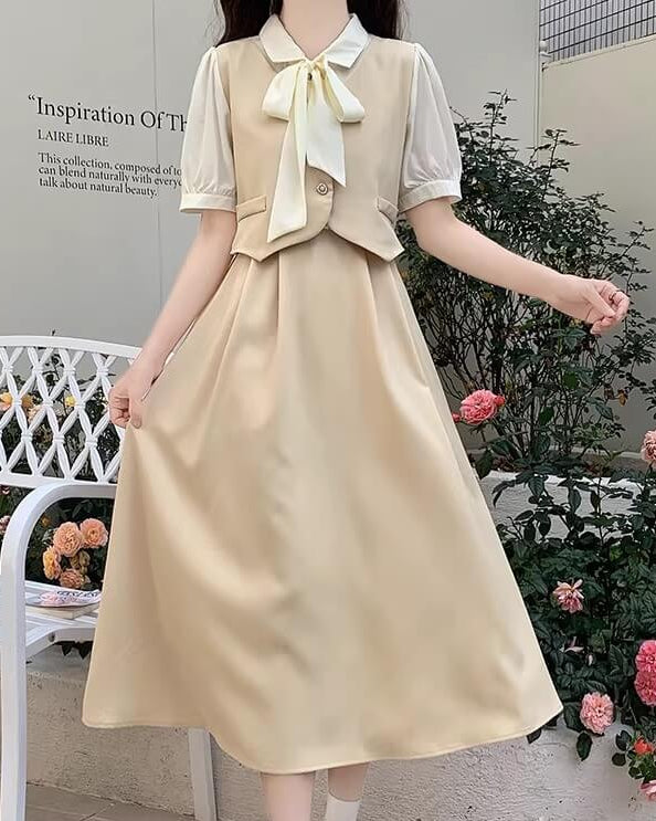 レイヤード風デザインがとても新鮮で、1枚でしっかりとコーデが完成するワンピースです。 大きなリボンが印象的で、顔まわりを華やかに見せてくれるのも嬉しいポイント◎ カラーによって雰囲気が変わるので、自分らしいお気に入りを選べるのも魅力の一着です。