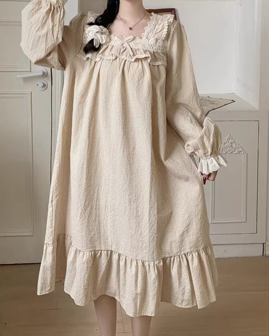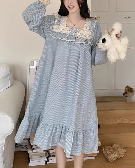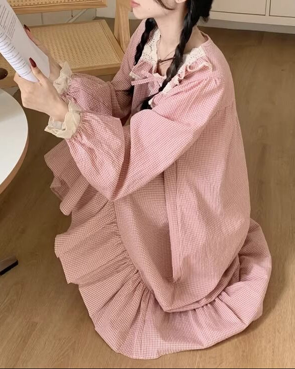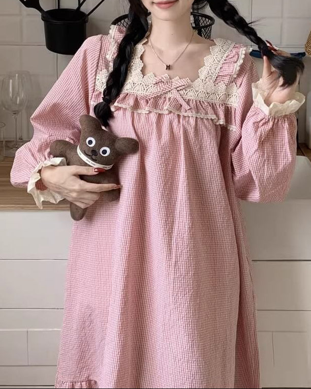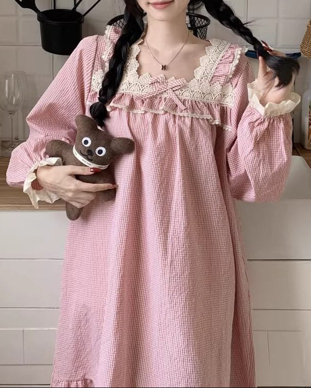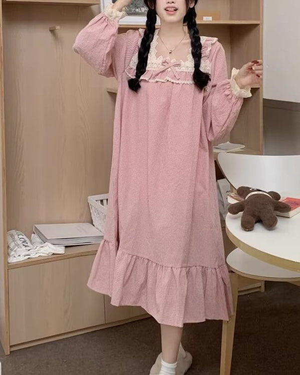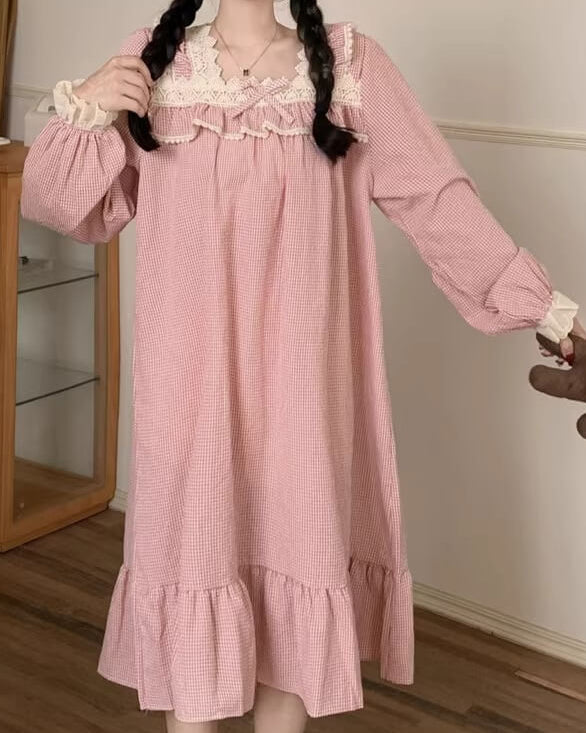 胸元のレースとリボンが愛らしさを演出し、寝る前のひとときまでプリンセス気分に。