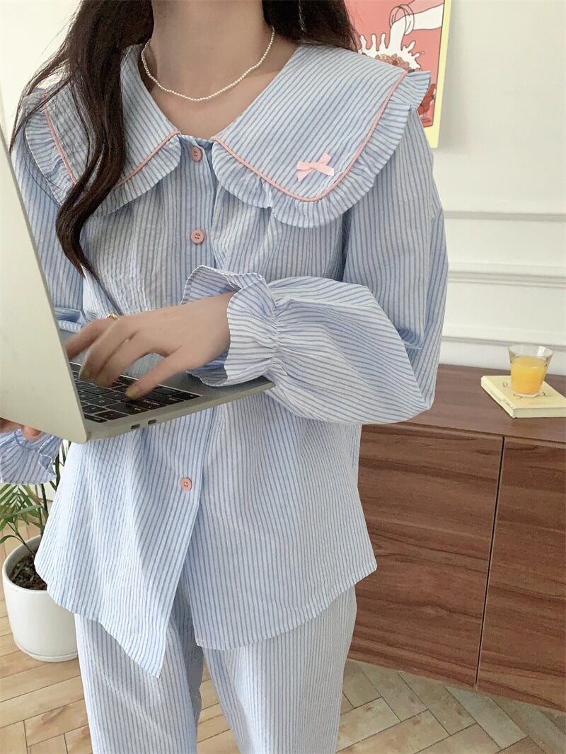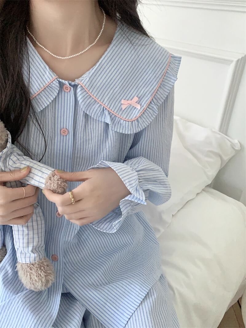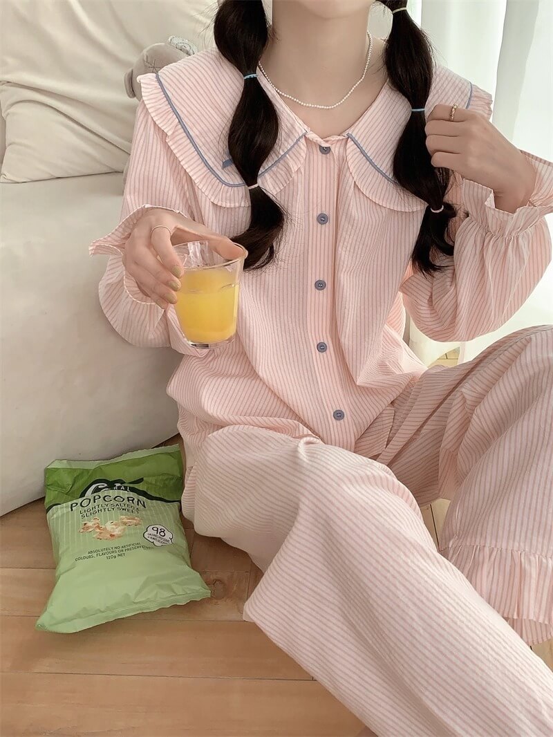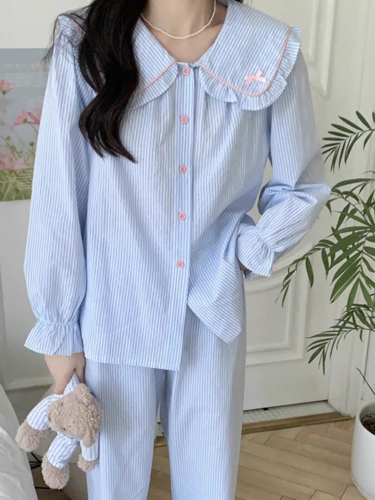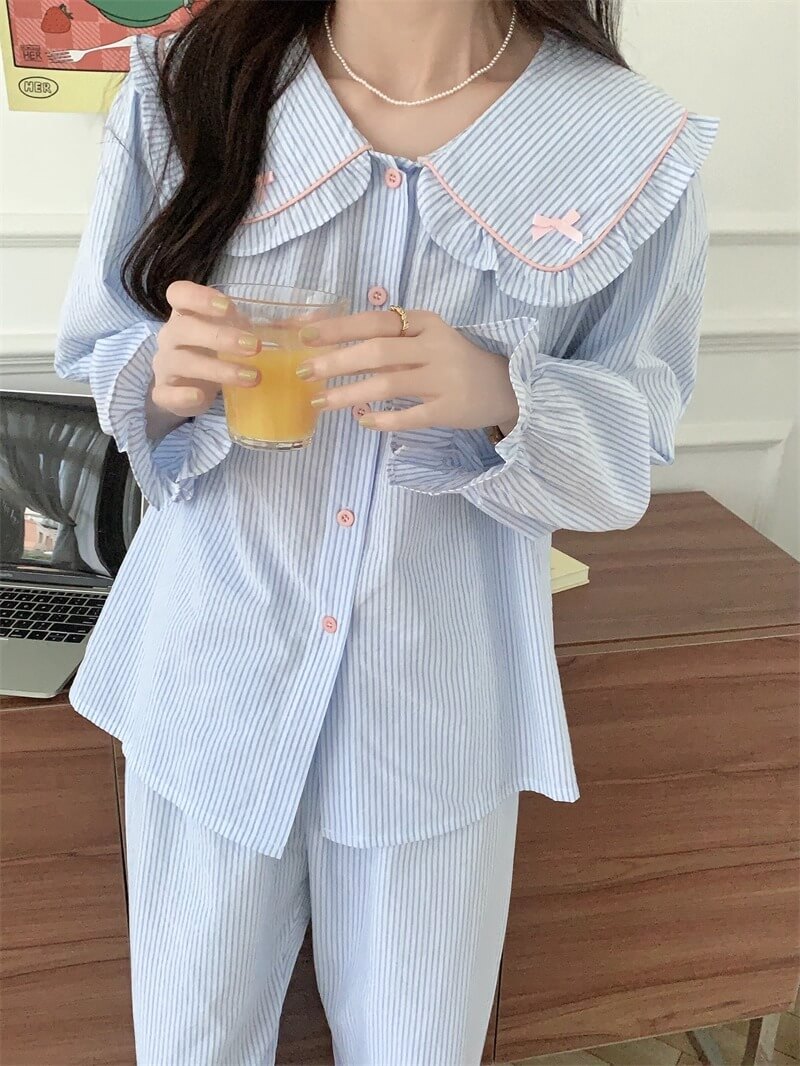 【2点セット】星降る夜のストライプルームウェア(全2色)