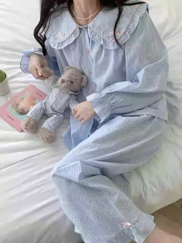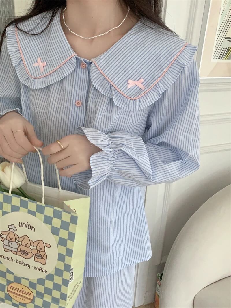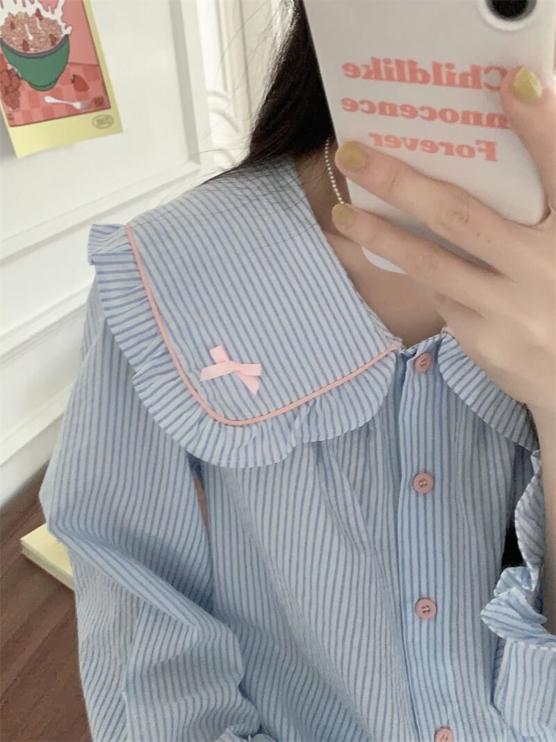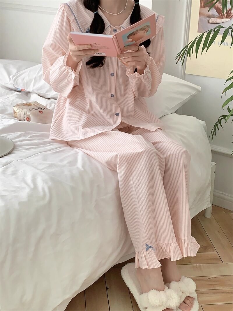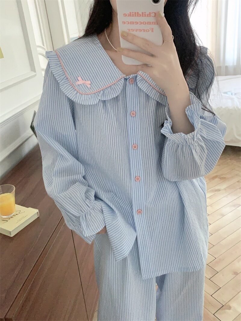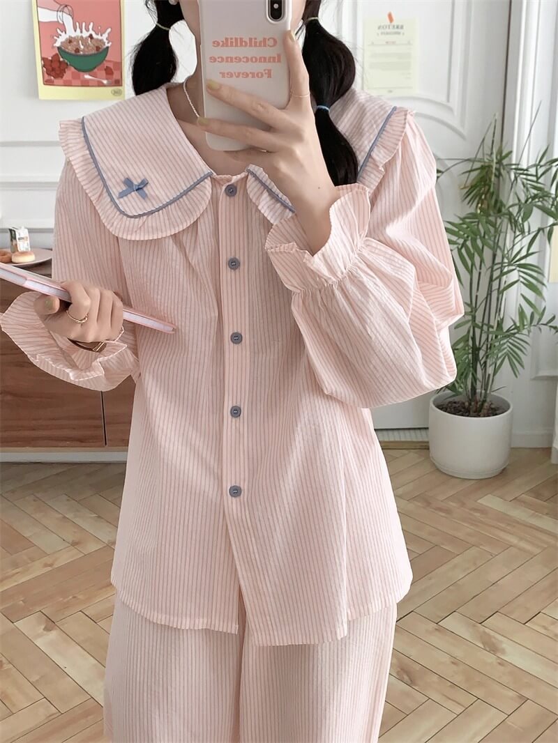【2点セット】星降る夜のストライプルームウェア(全2色)