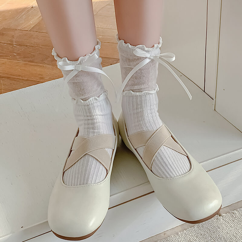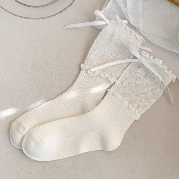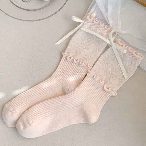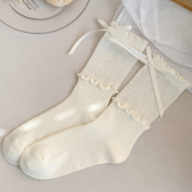 リボンとメロウフリルが足元を包む、甘くて上品なプリンセスソックス