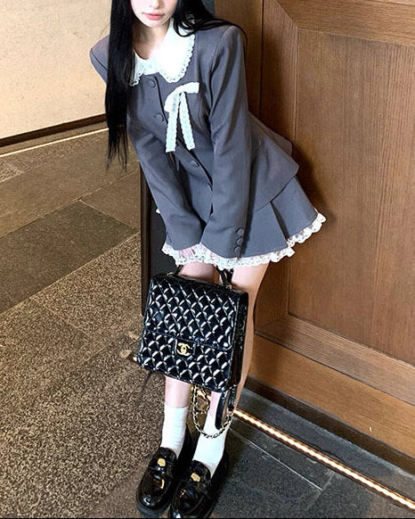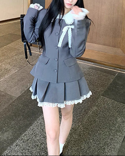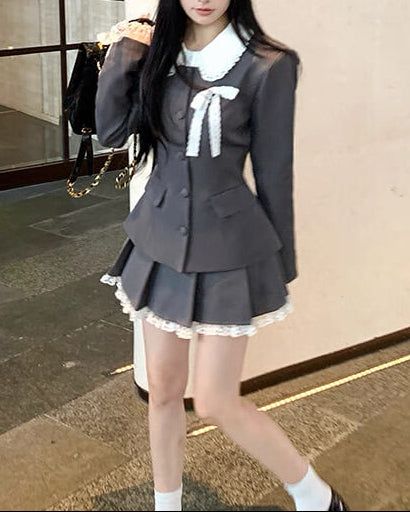 品格と可憐さを兼ね備えた、レース襟×リボンが印象的なクラシカルセットアップ