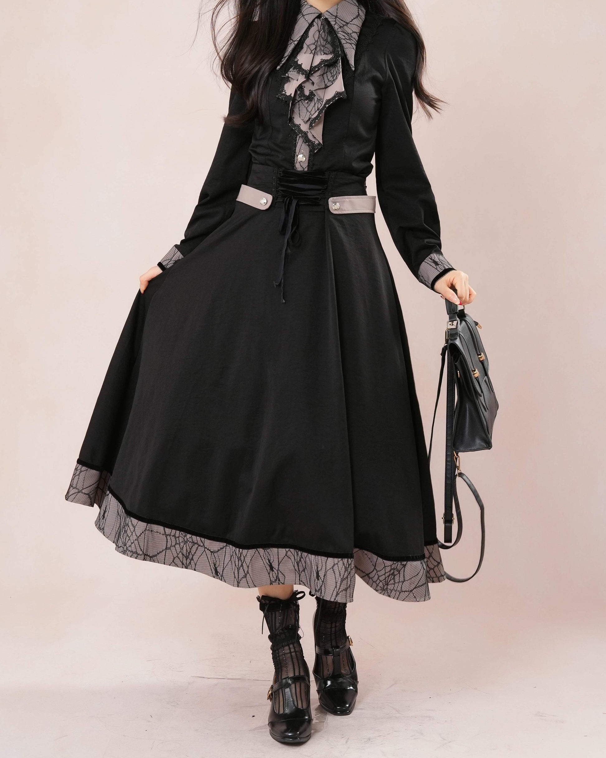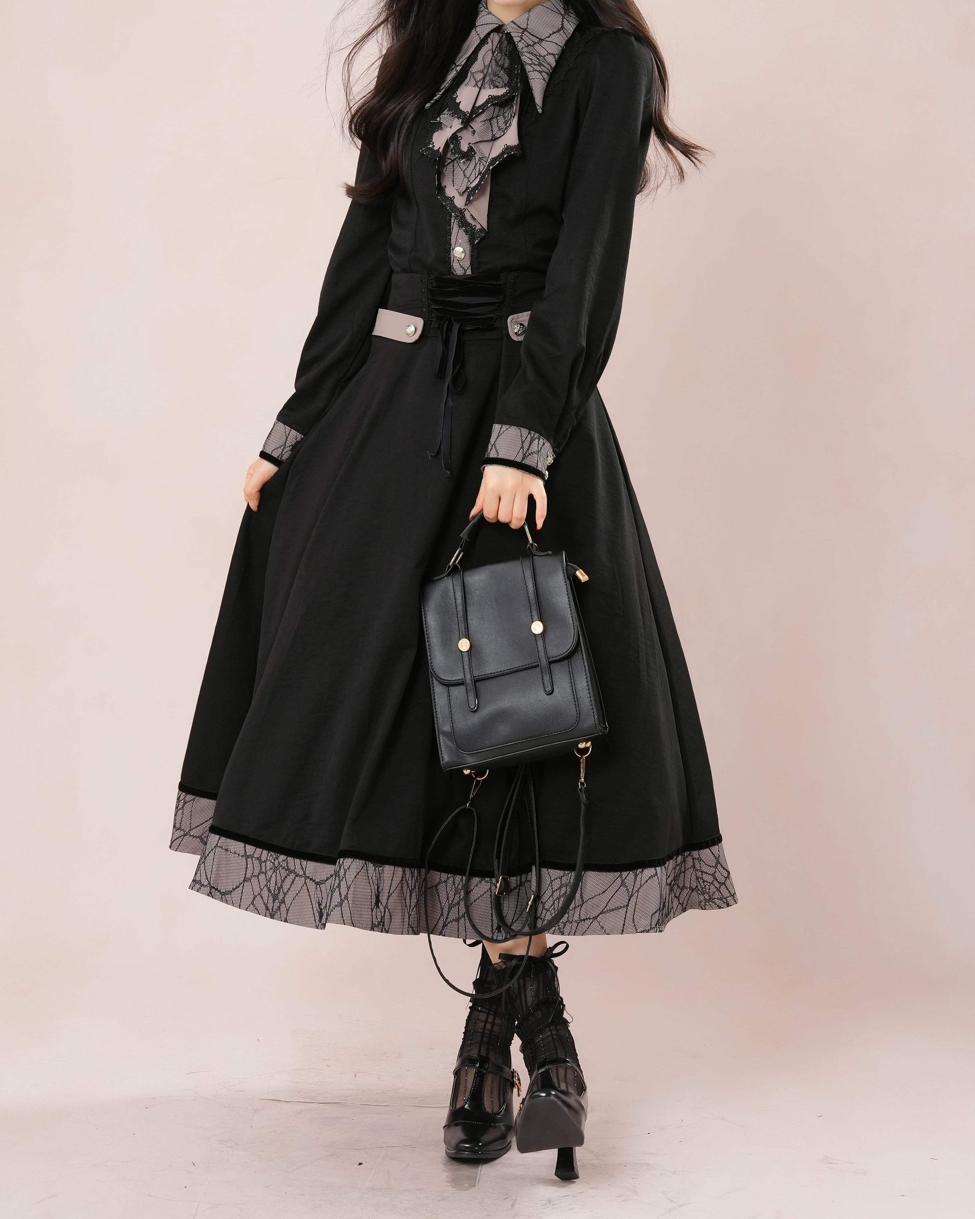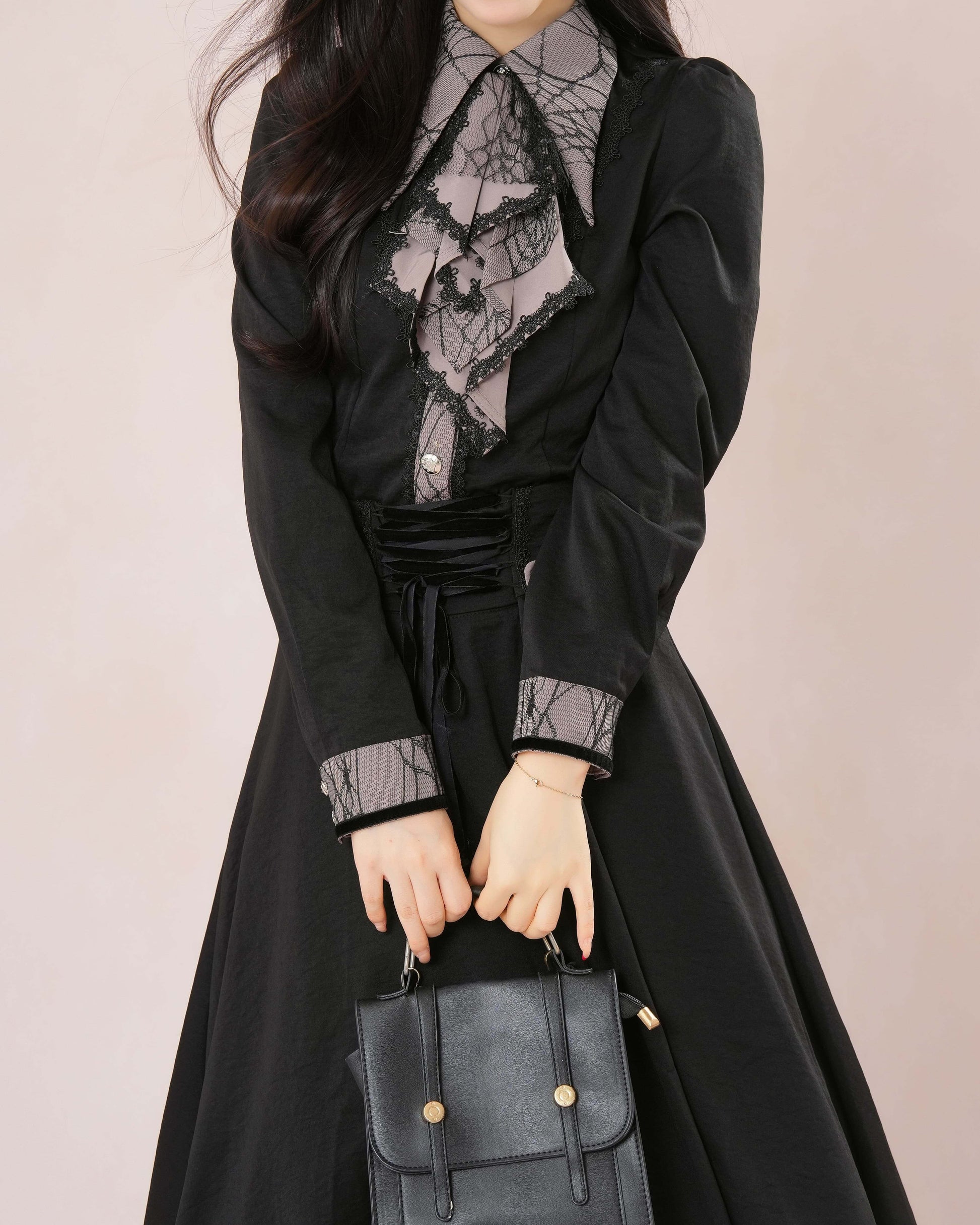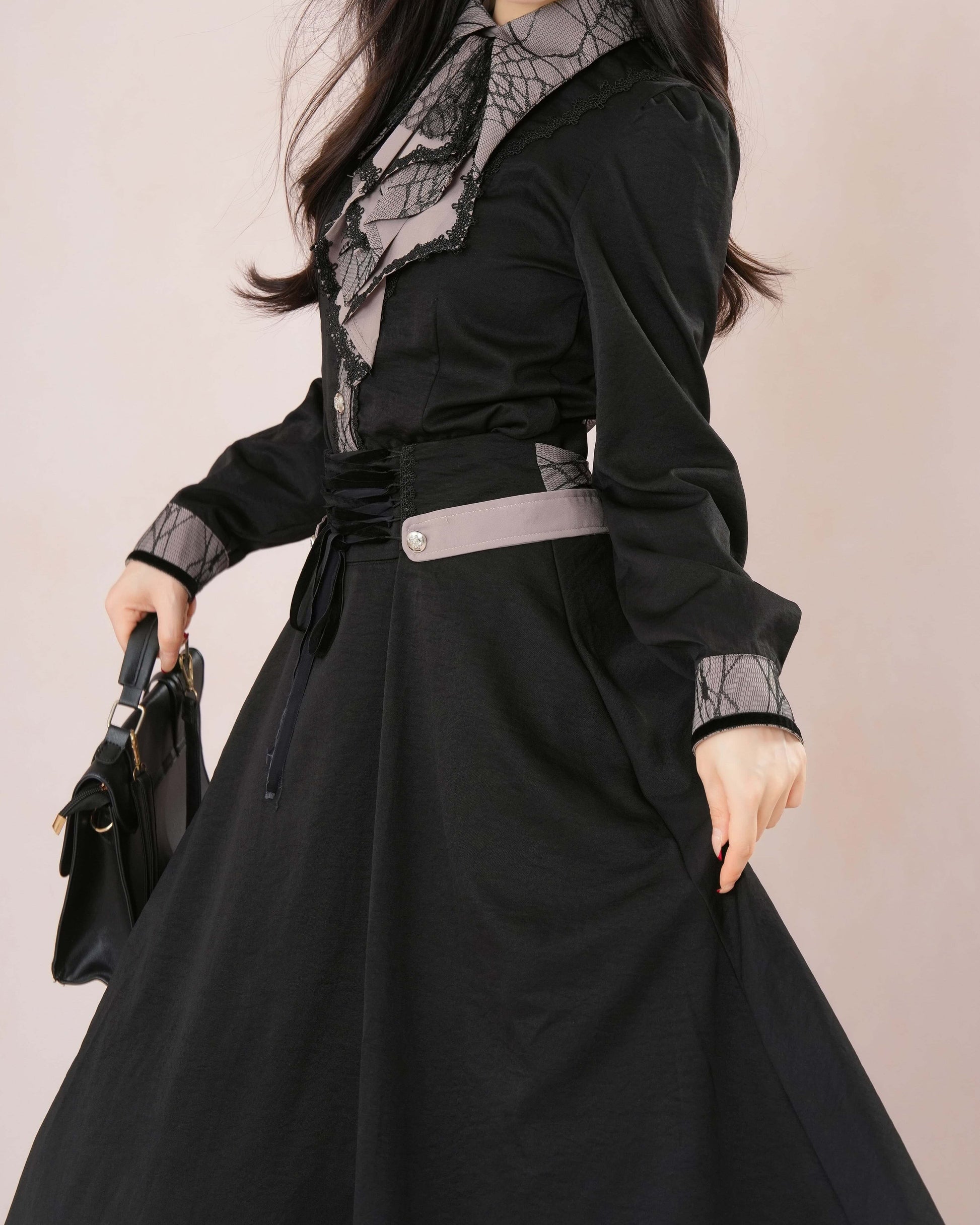 気品漂うレース襟とロングフレアが織りなす、