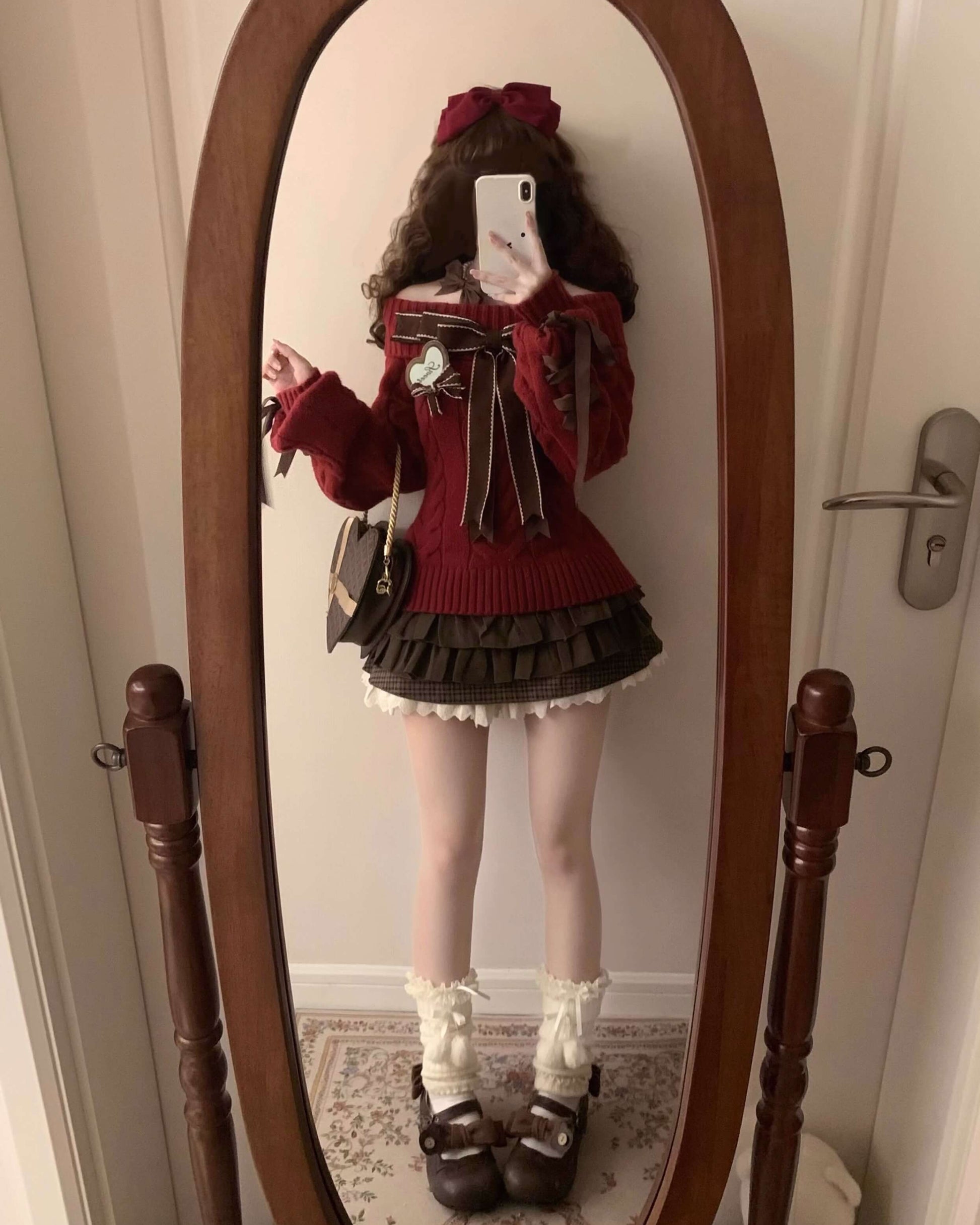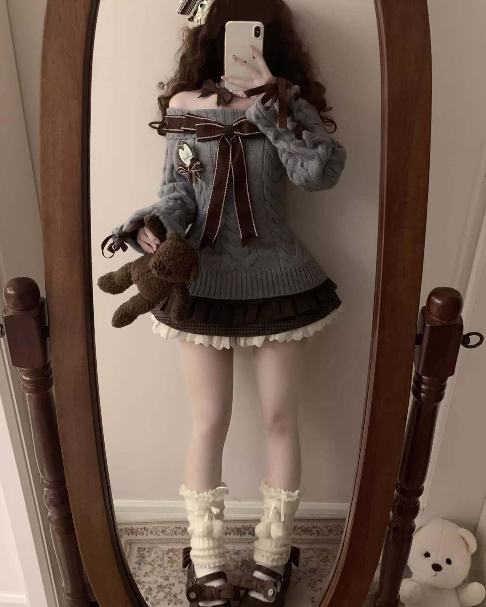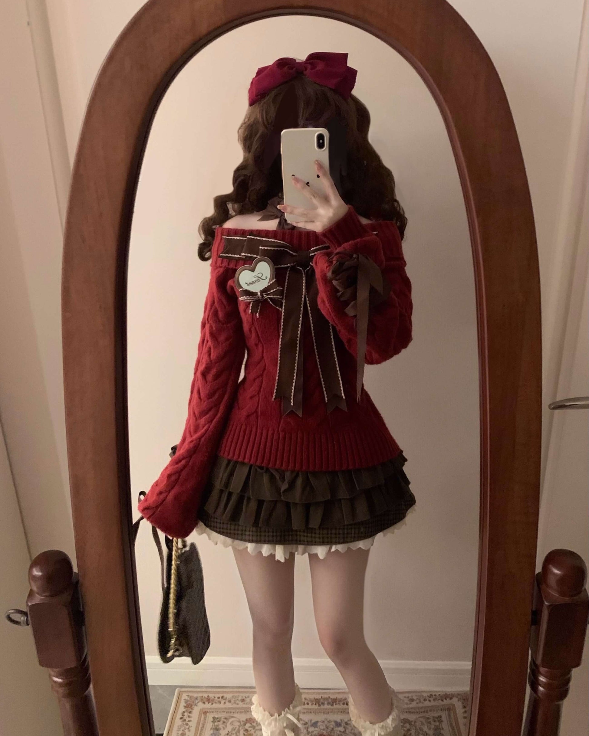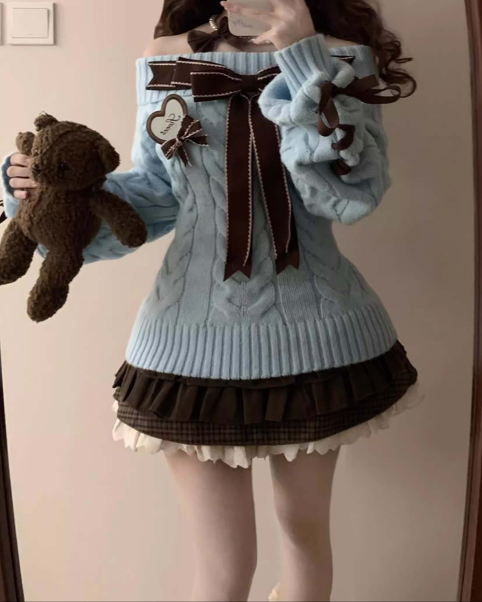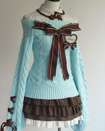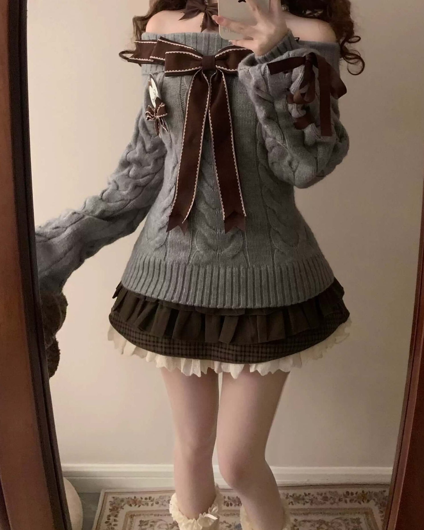 とろけるようなショコラリボンが胸元を彩る、甘くて可愛いプリンセスニット