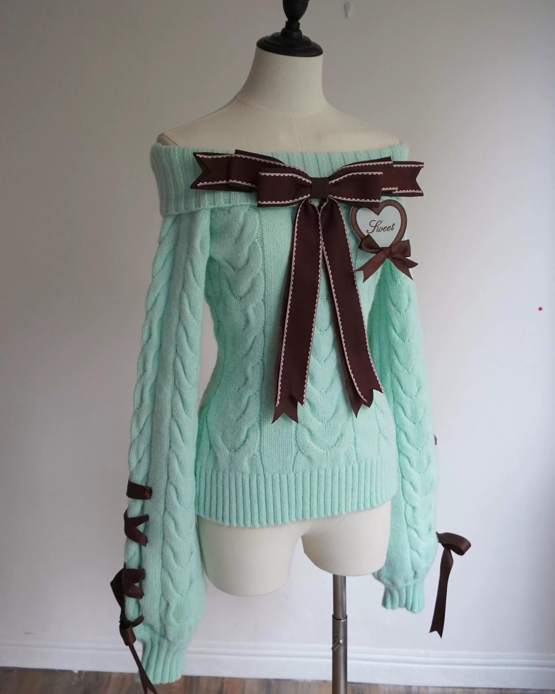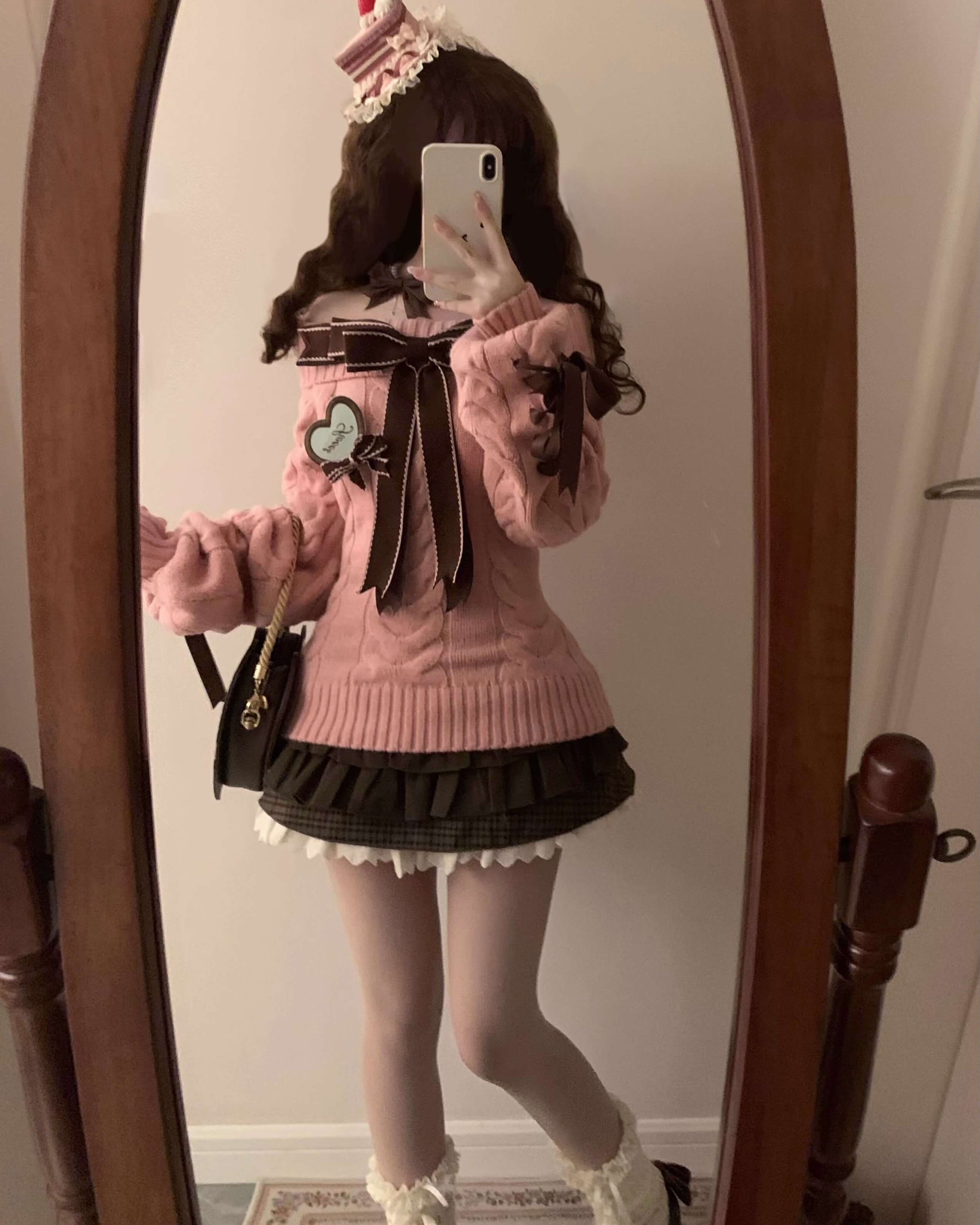 【スイーツのような可愛さ】夢見るパティシエのショコラリボンニット(全5色)